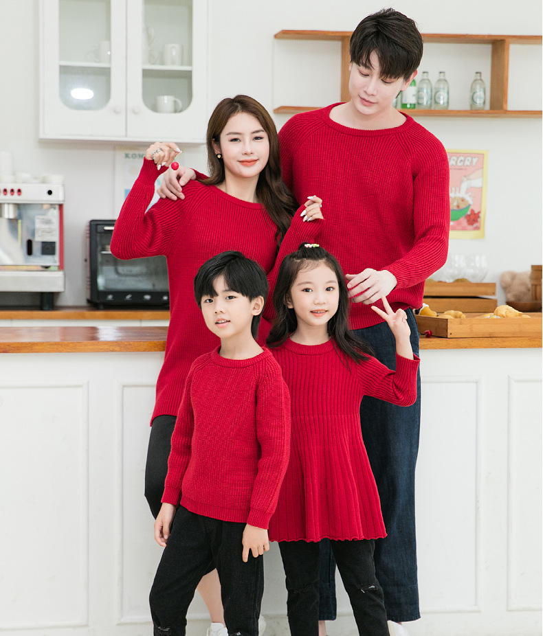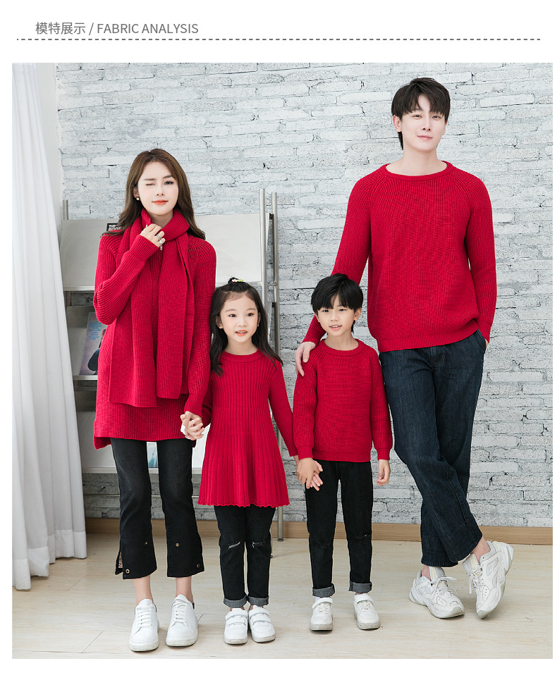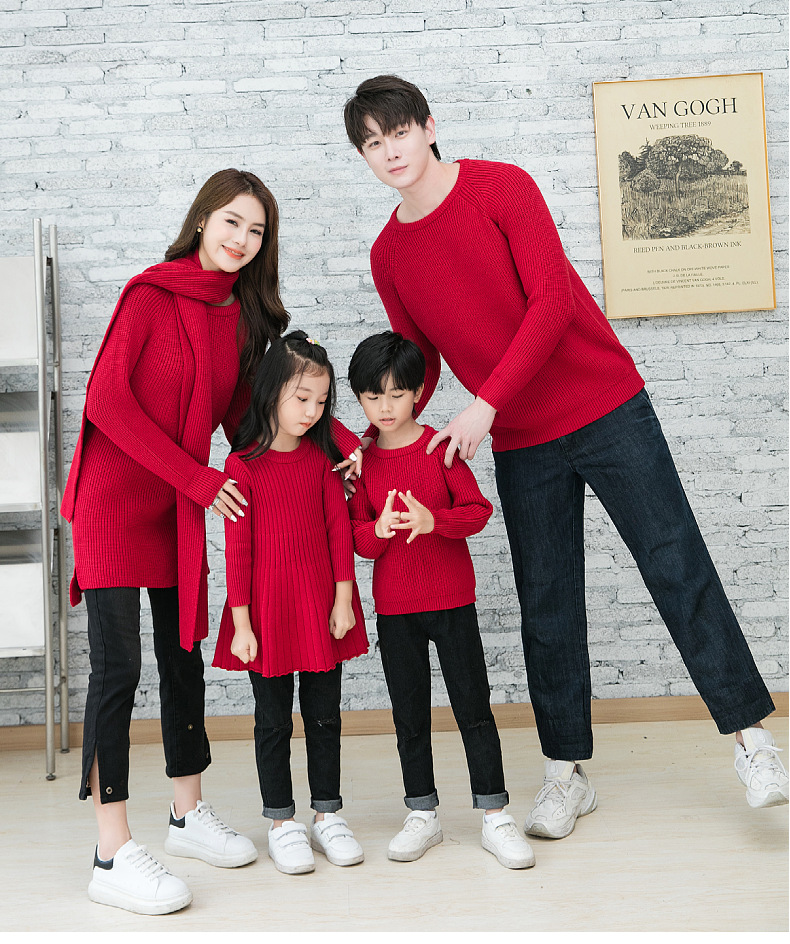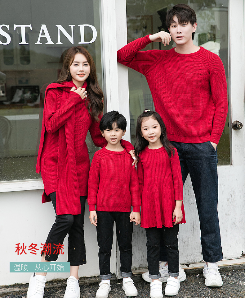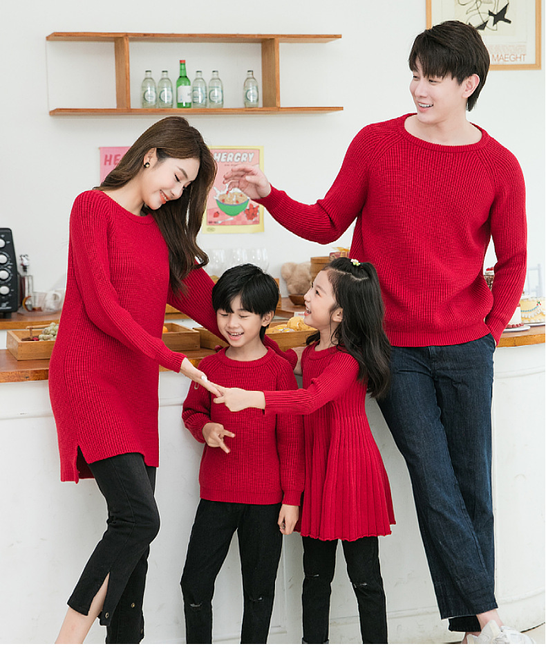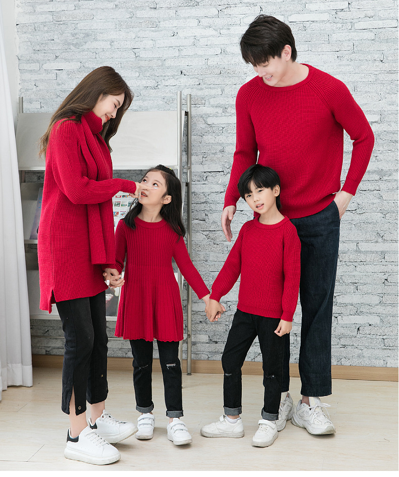 Осенние и зимние семейные комплекты одежды, красные утепленные свитера с круглым вырезом для семьи из трех или четырех человек, комплекты для пар, модный стиль интернет-знаменитостей.
