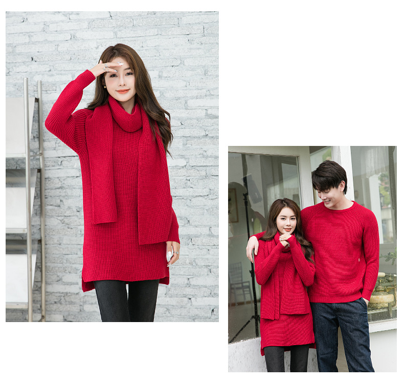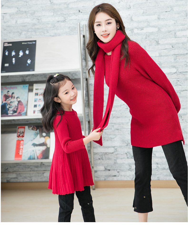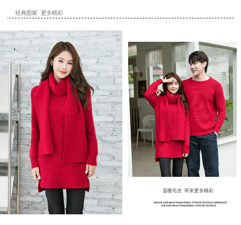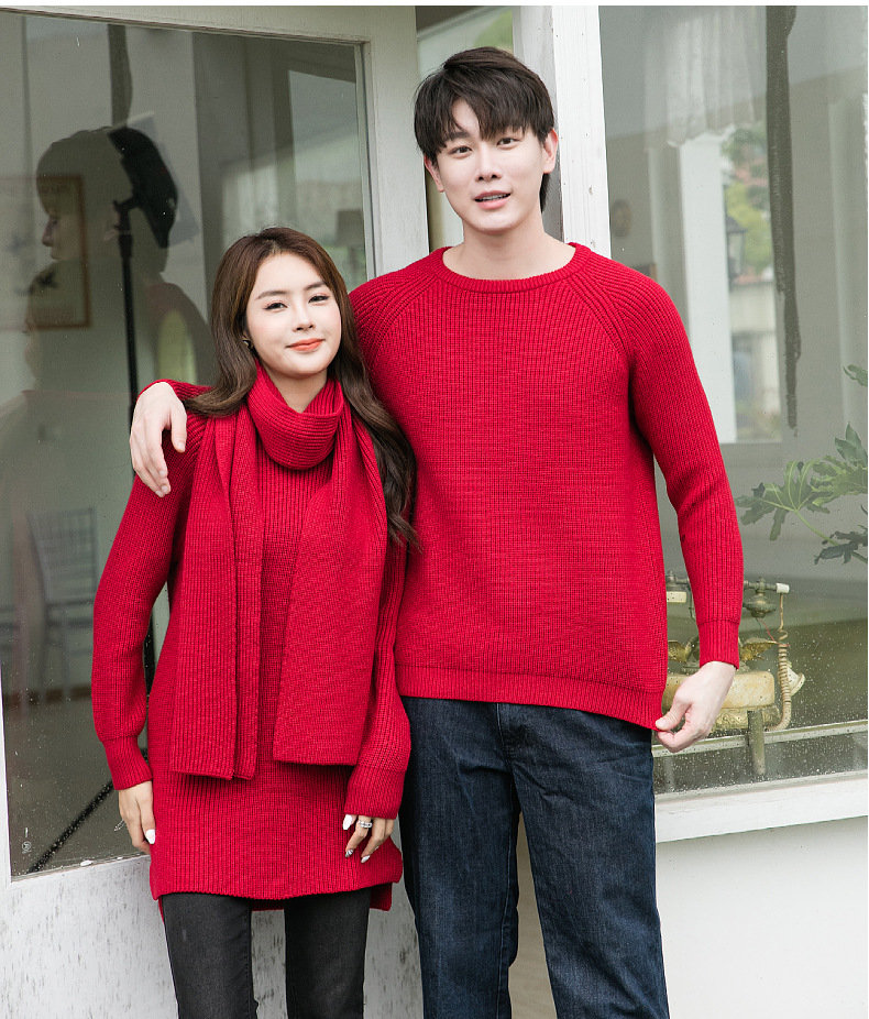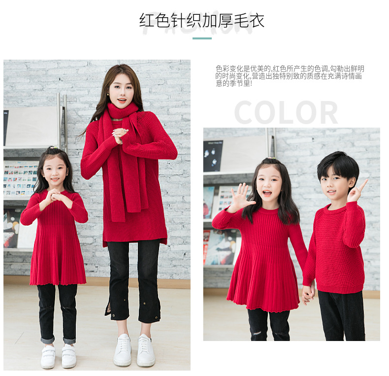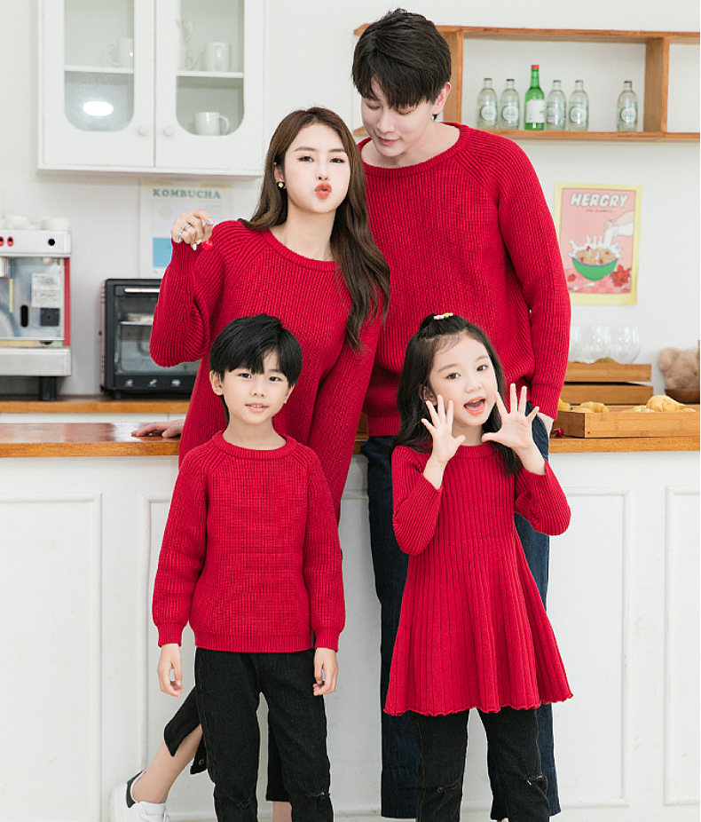 Осенние и зимние семейные комплекты одежды, красные утепленные свитера с круглым вырезом для семьи из трех или четырех человек, комплекты для пар, модный стиль интернет-знаменитостей.