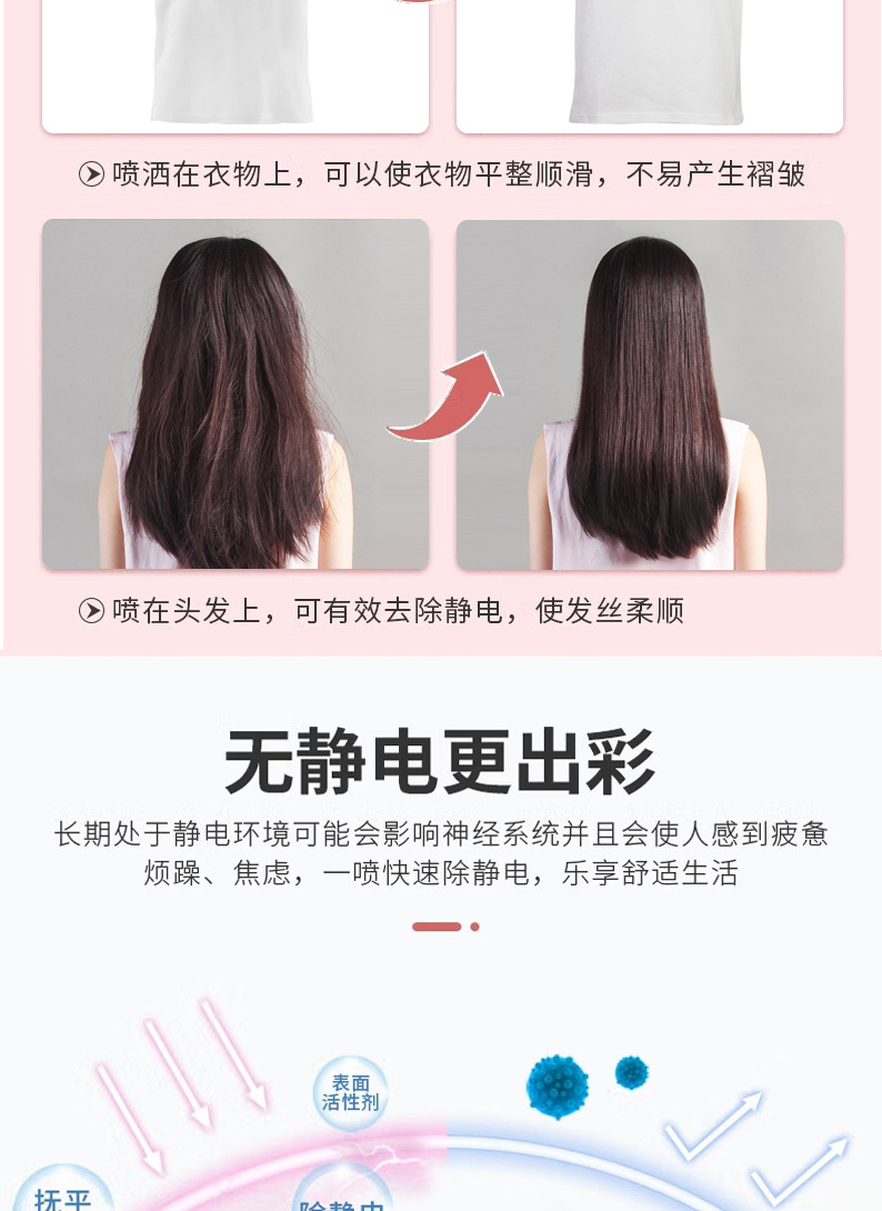 Антистатический спрей для одежды, смягчает волосы, удаляет статическое электричество с свитеров, устраняет морщины, антистатический, устраняет статическое электричество, длительный аромат