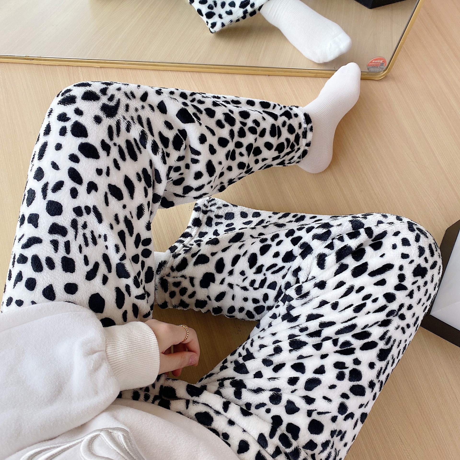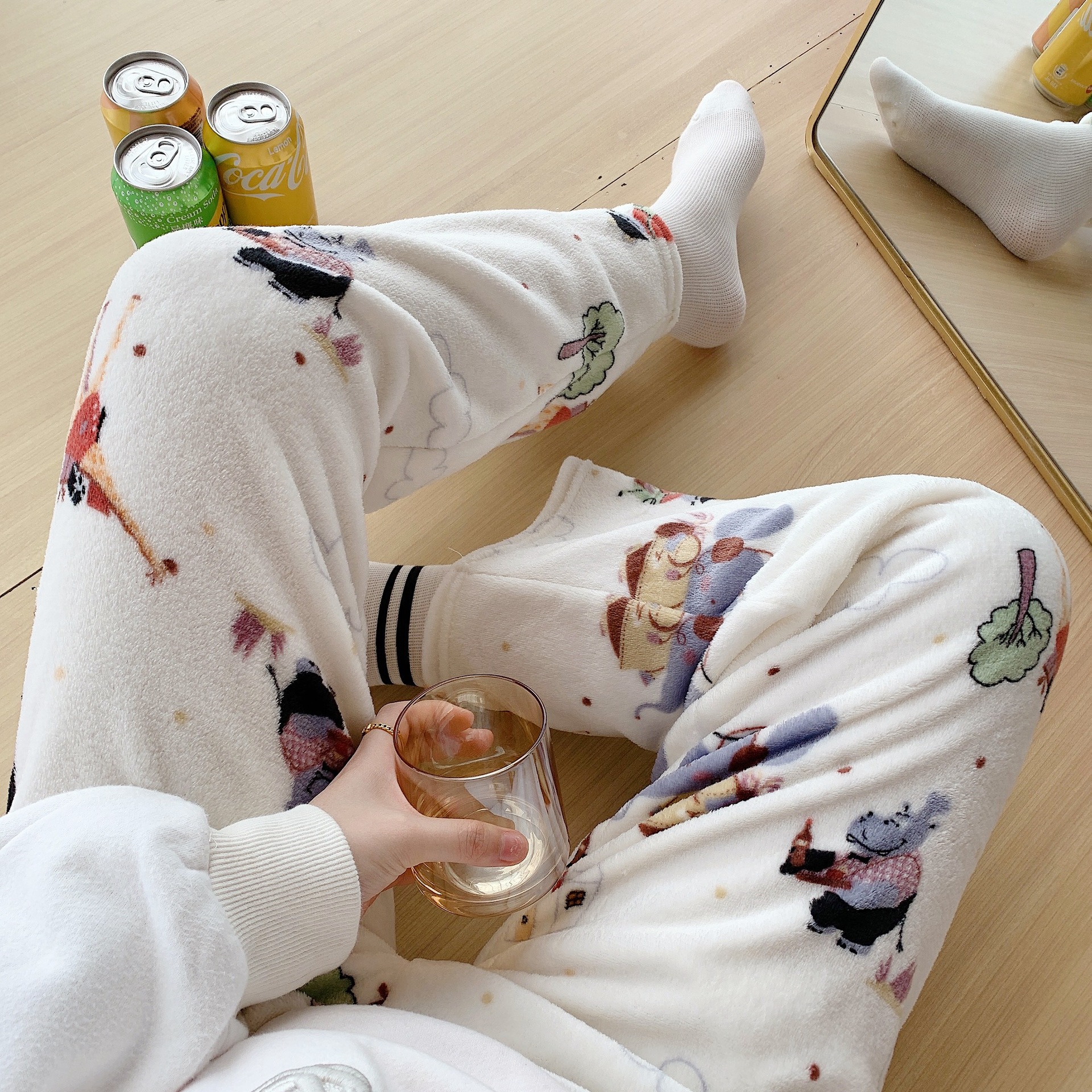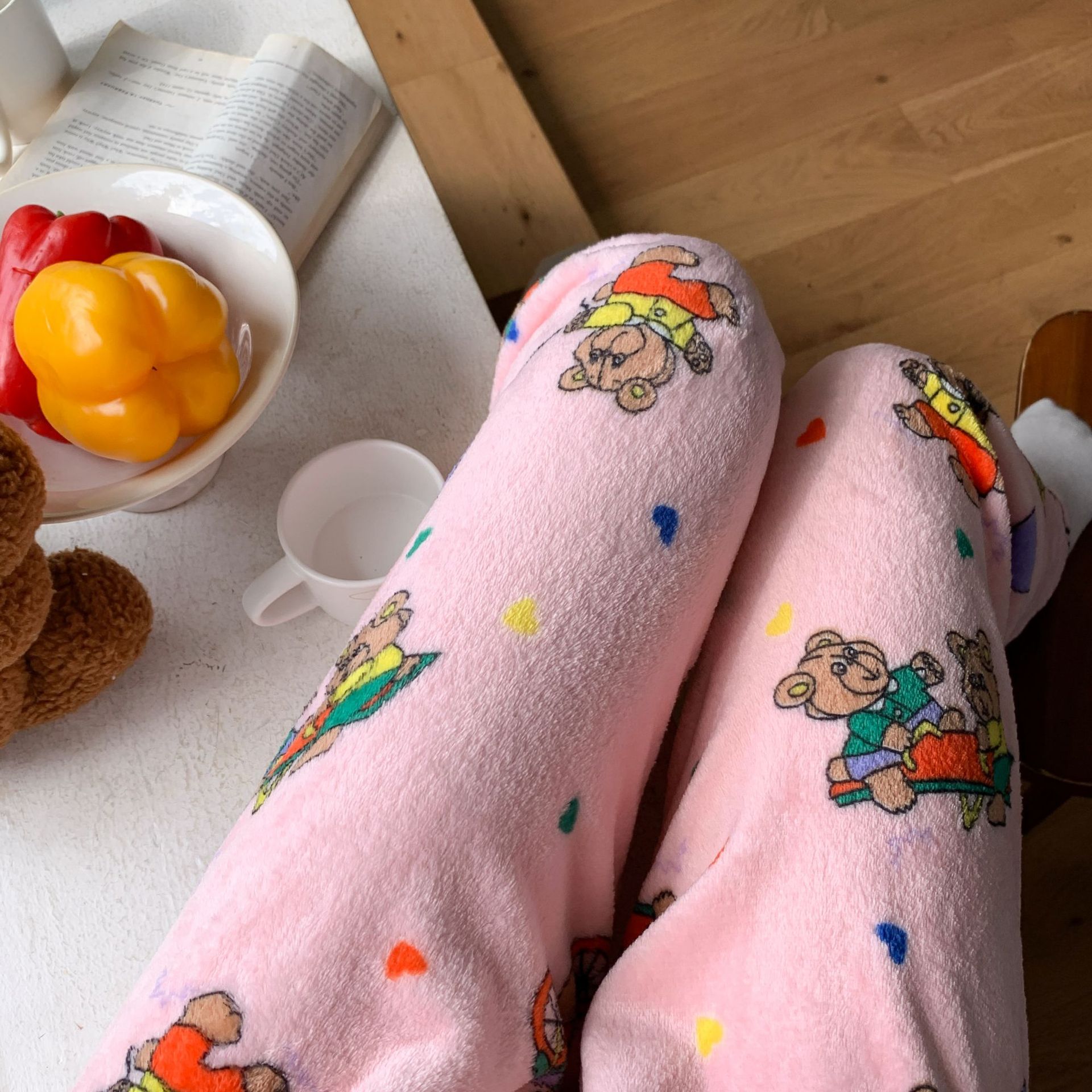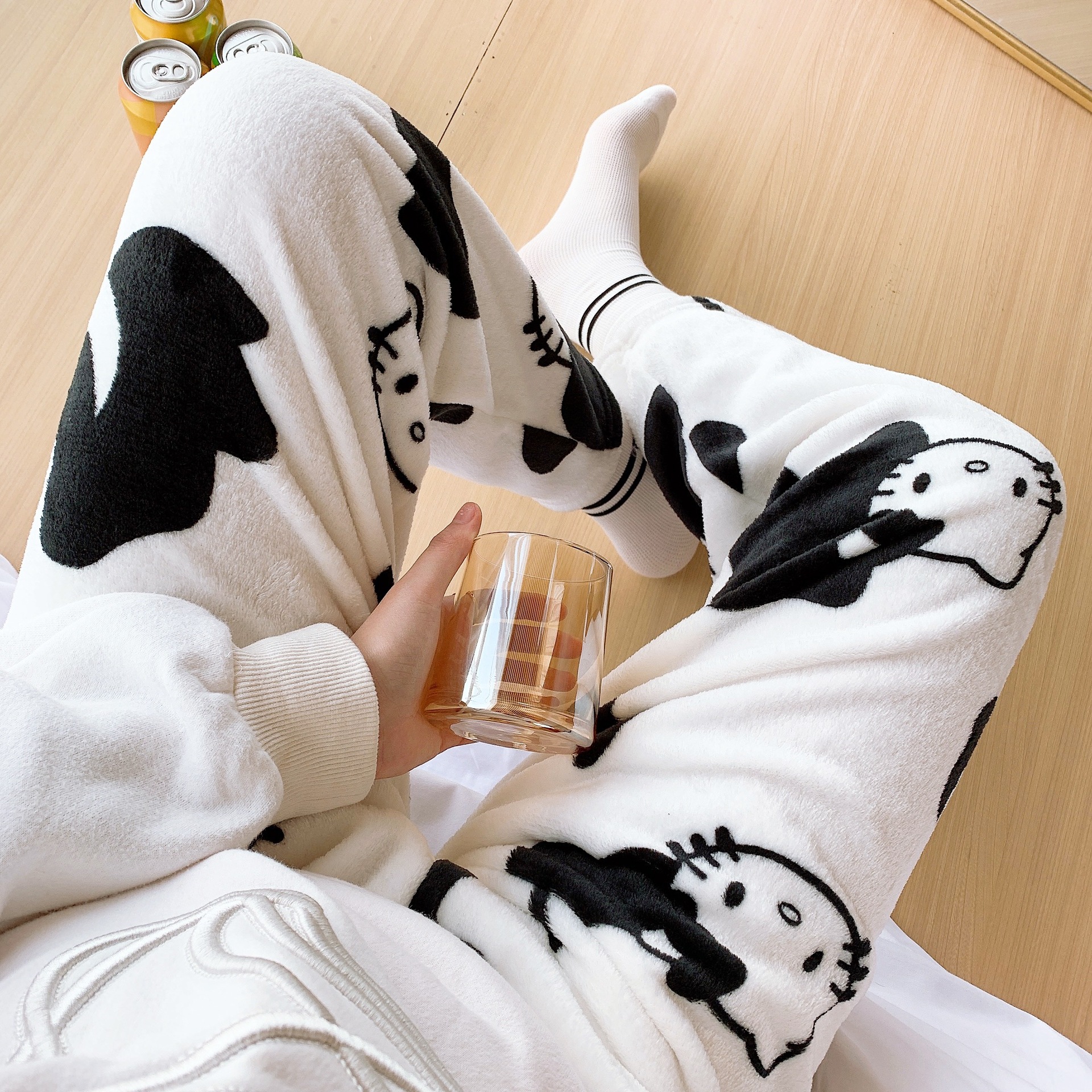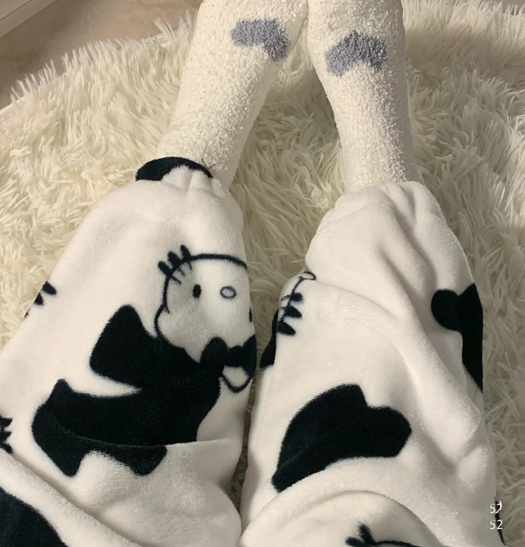 Мультяшный кот фланелевые пижамы женские осенние и зимние новые коралловые бархатные толстые и бархатные теплые повседневные домашние брюки