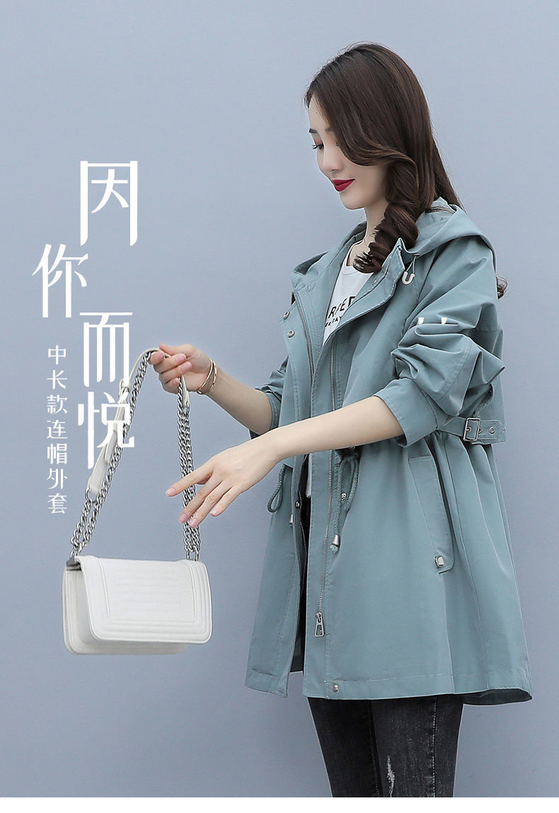 Тренч для спецодежды женский средней длины 2023 весна и осень Новое свободное повседневное модное коричневое пальто в стиле милитари с капюшоном модное