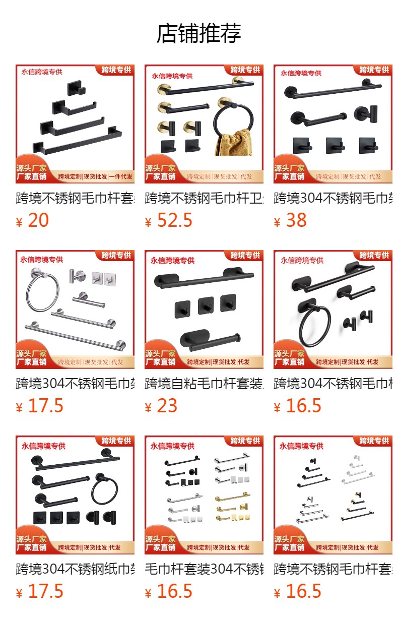 Трансграничный костюм для полотенец из нержавеющей стали Ванная комната Настенный держатель для полотенец Держатель для полотенец Кольцо для полотенец Крючок Черный кулон Комплект