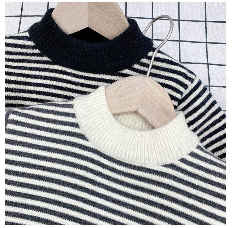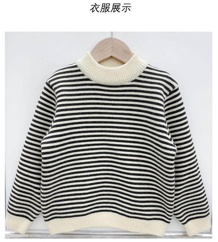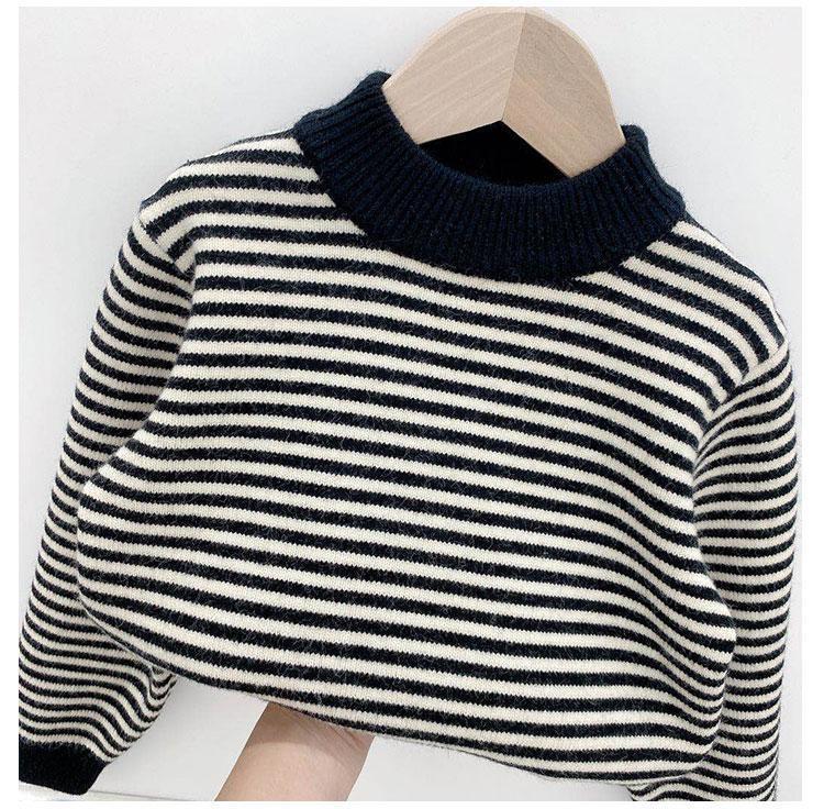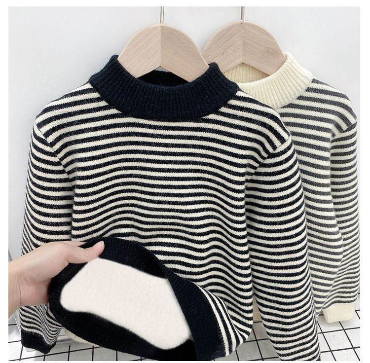 Свитер для мальчиков Пуловер на флисовой подкладке, осенне-зимняя Стильная Детская цельная флисовая полосатая трикотажная Базовая рубашка для мальчиков
