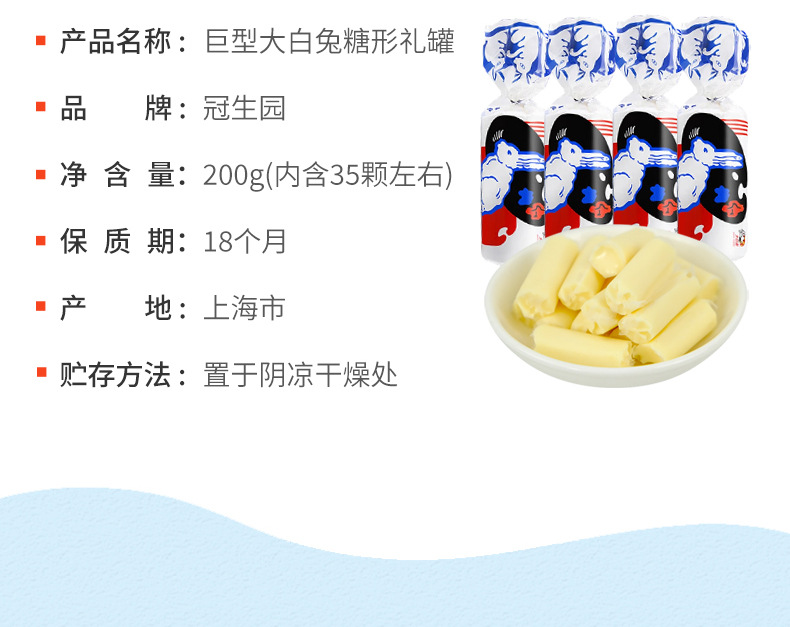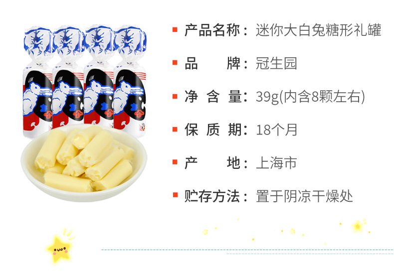 Guanshengyuan Белый Кролик 39 г Подарочная банка в форме сахара детский игрушка детский день свадебные конфеты сувенирные закуски вся коробка оптом
