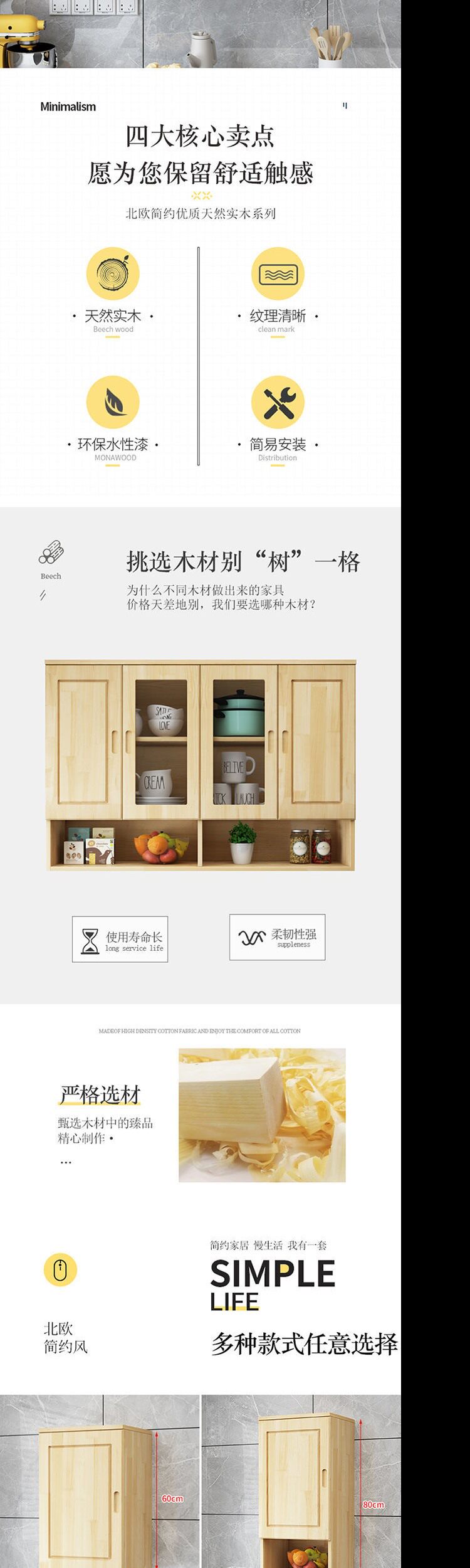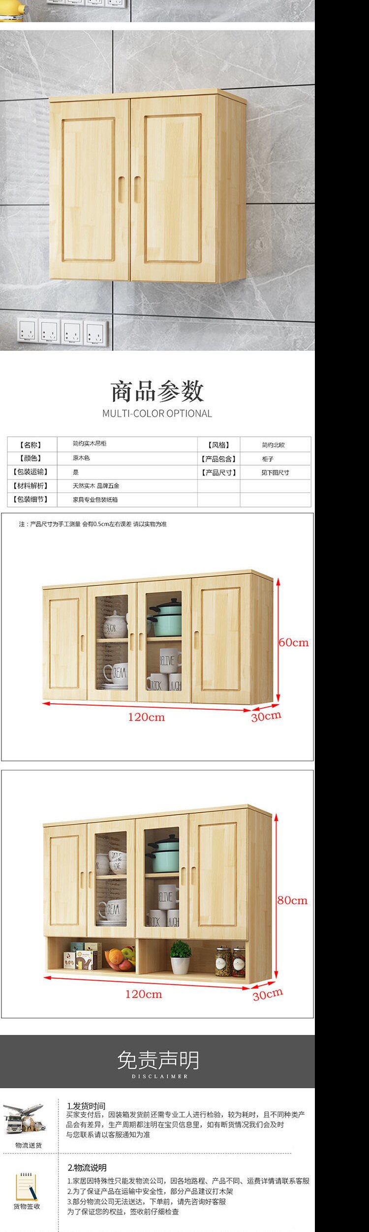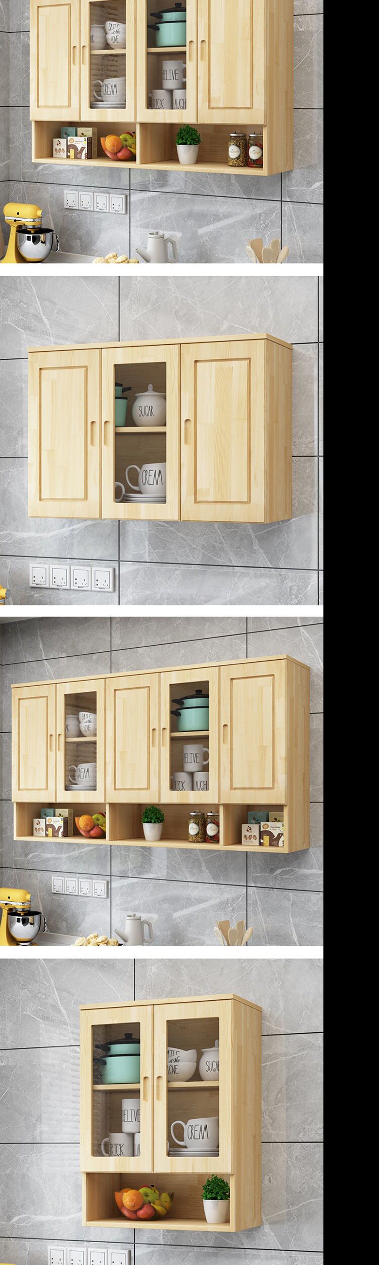 Кухонный подвесной шкаф из цельного дерева Простой шкаф Экономичный шкаф Верхний шкаф для спальни Настенный шкаф Шкаф для хранения в ванной комнате