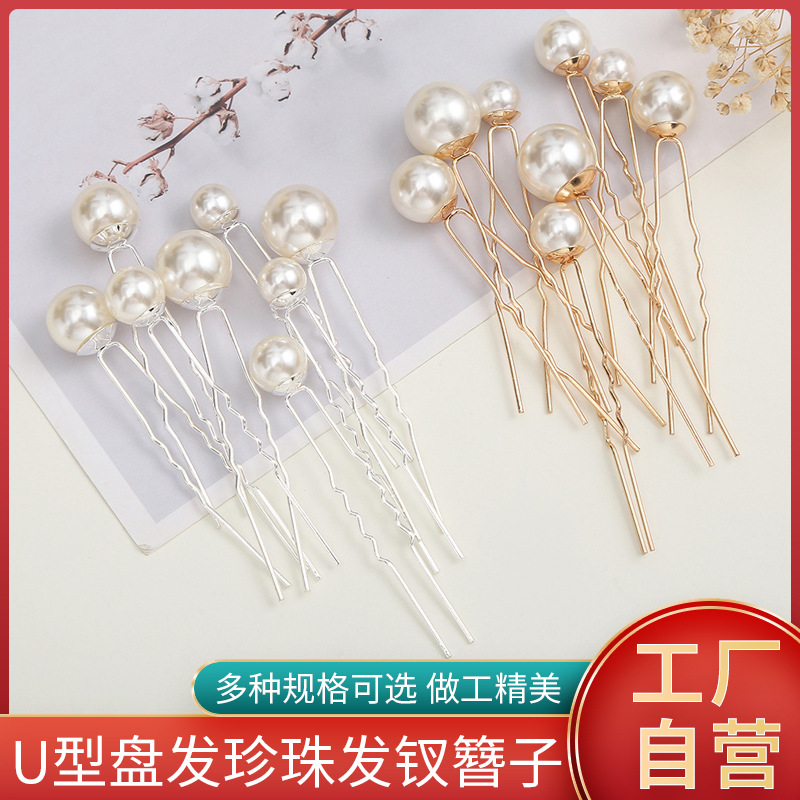 Южная Корея свадебный головной убор пластина застежка для волос жемчужная заколка для волос U-образный зажим Свадебная пряжа аксессуары для волос простая заколка для волос