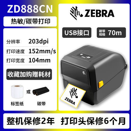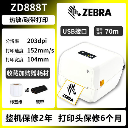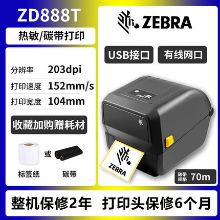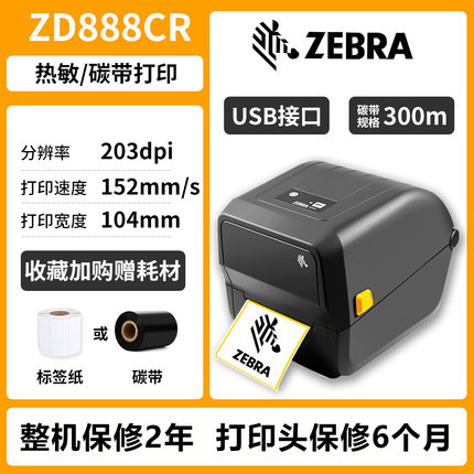 Zebra ZD888T термотрансферный ZD888CR двухмерный штрих-код термобумага для этикеток Экспресс-принтер этикеток