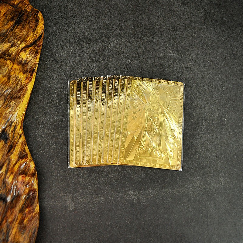 Латунь Фока Наньхай Гуаньинь Статуя Бодхисаттвы Металл Фока Большое Милосердие Проклятие Медная карта Амулет Мира Карта