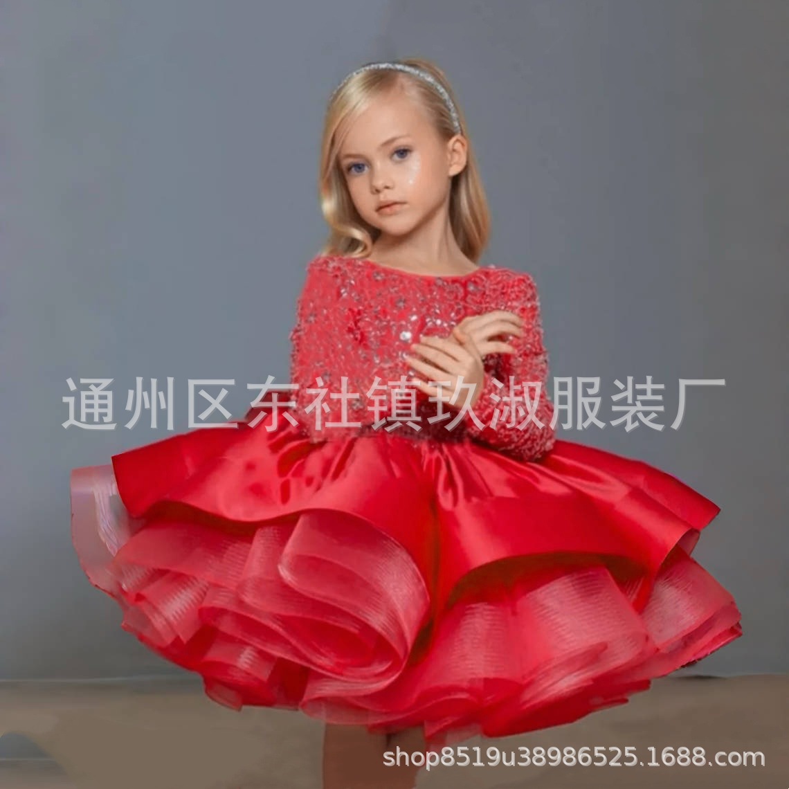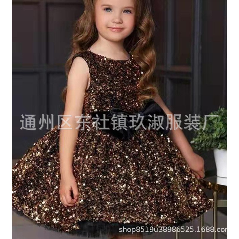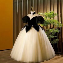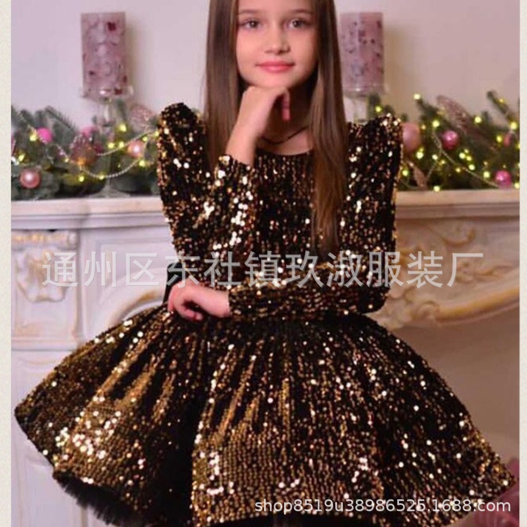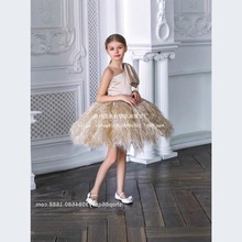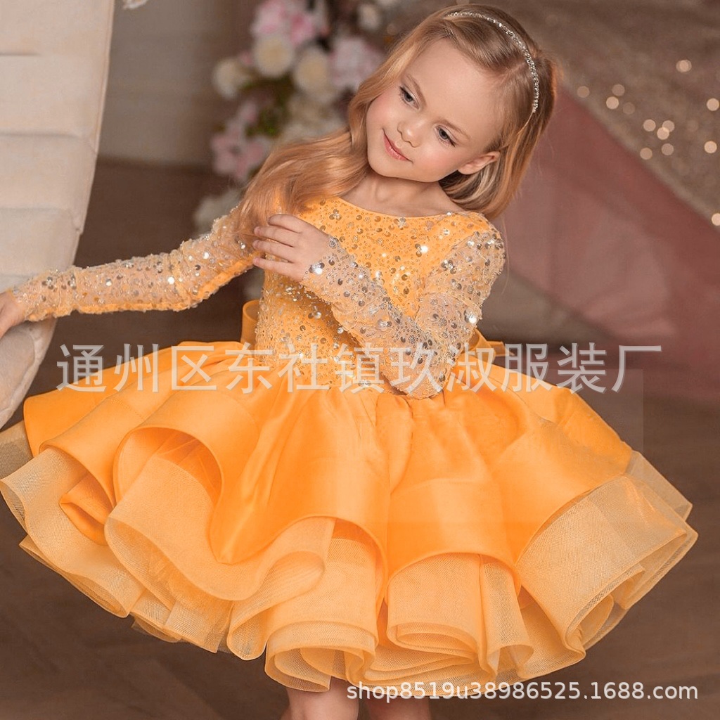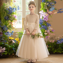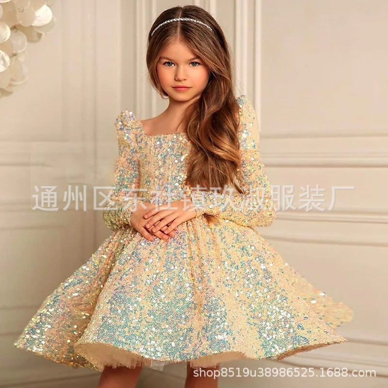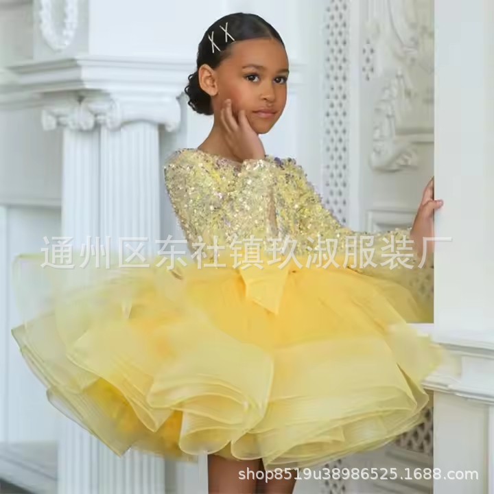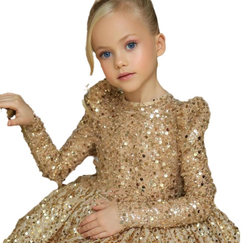 Детское Золотое платье, платье принцессы, банкетное платье для первого дня рождения девочки, платье для выступления на пианино-подиуме