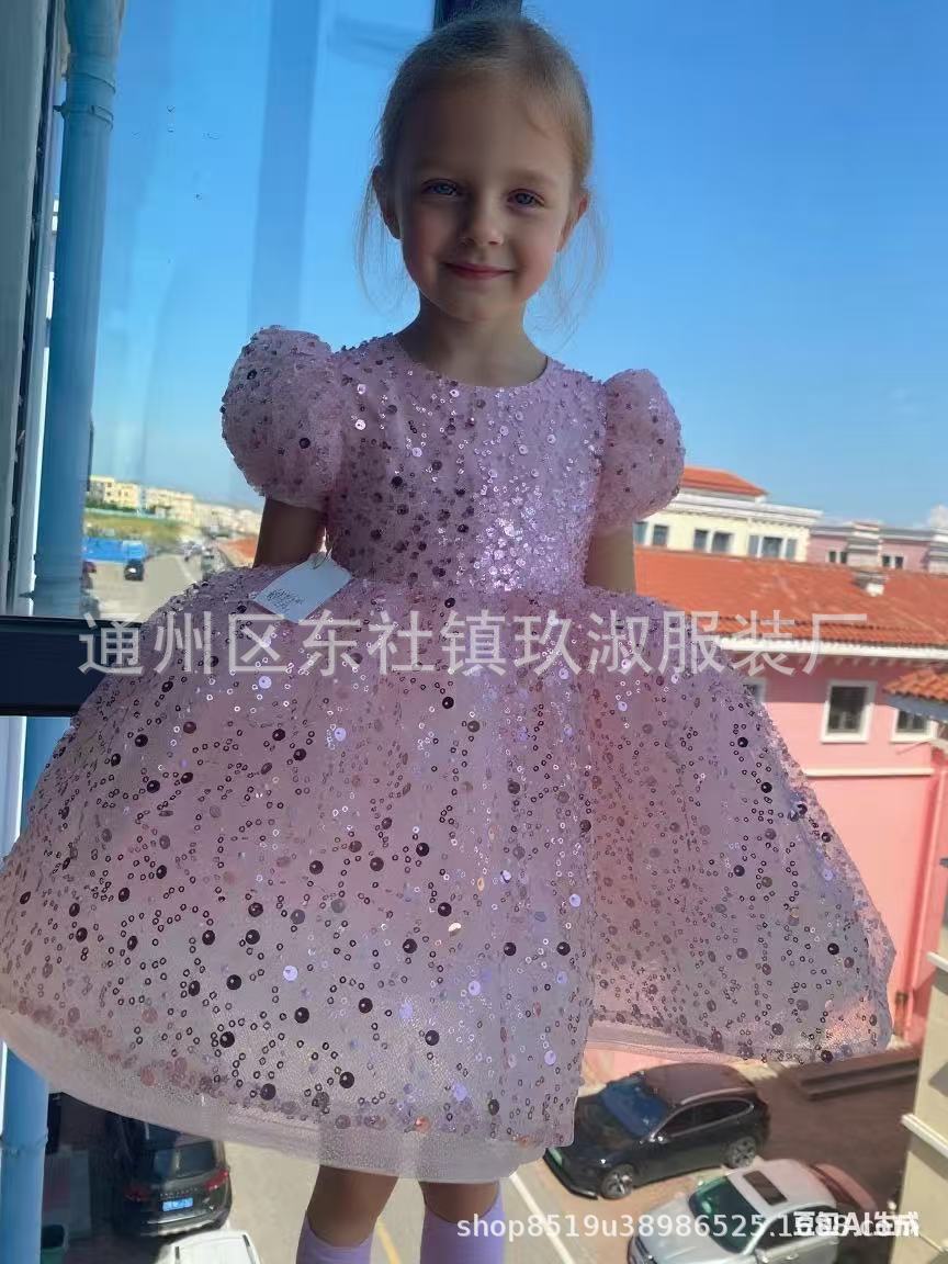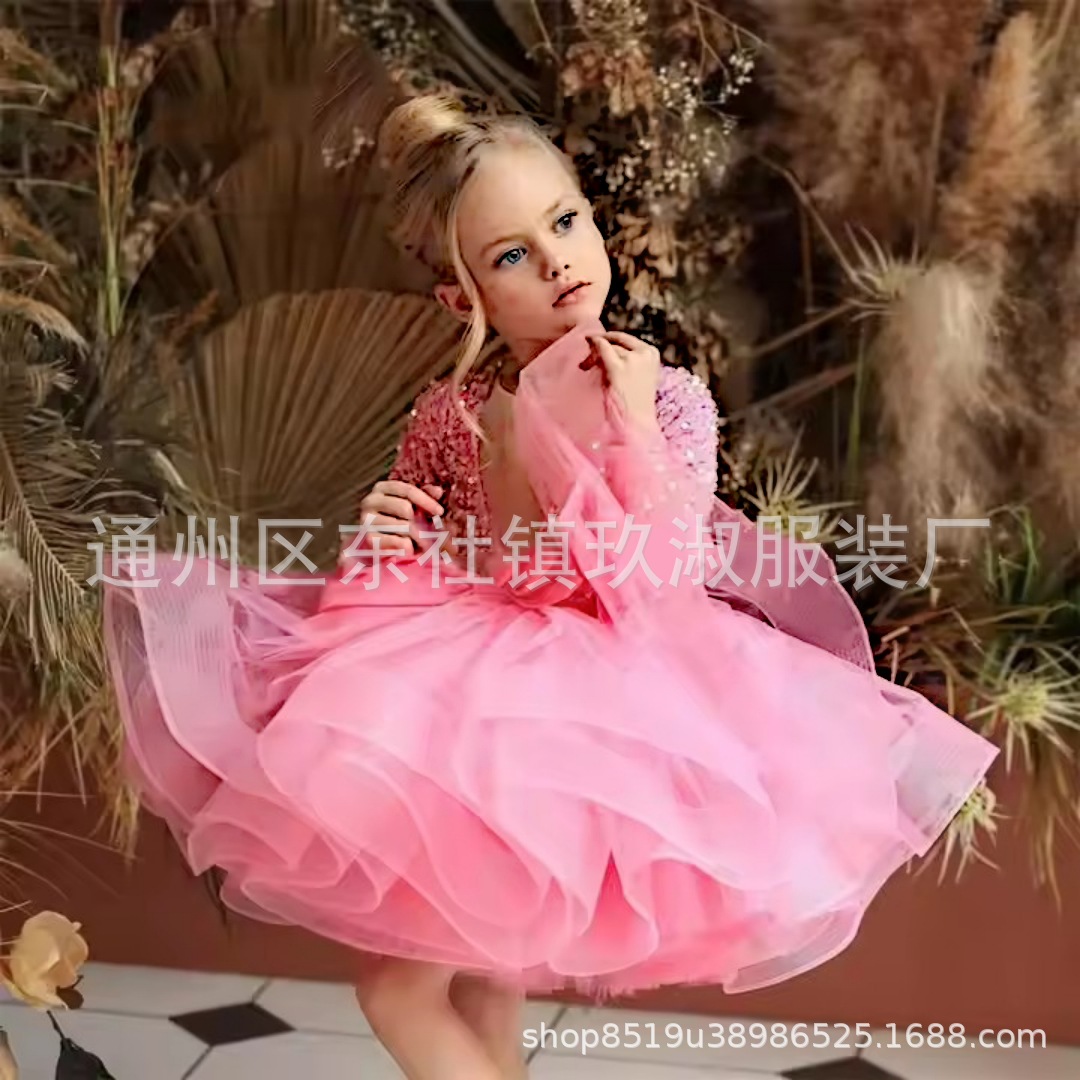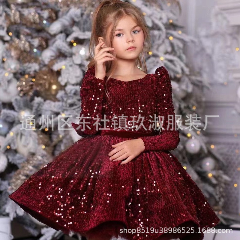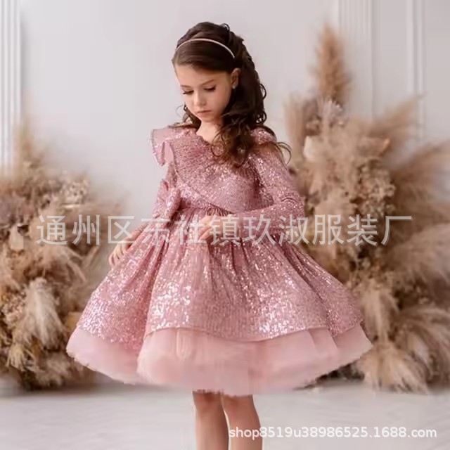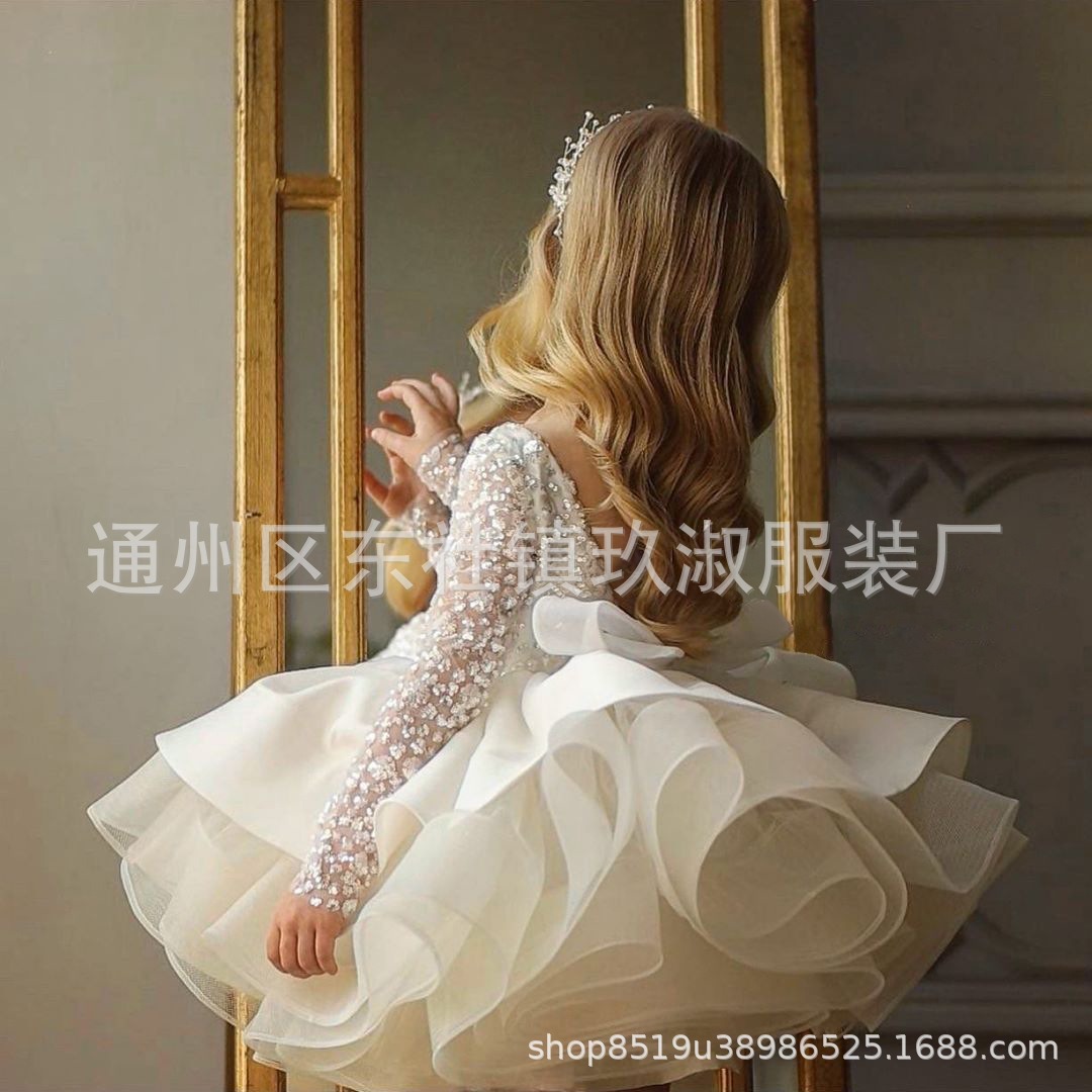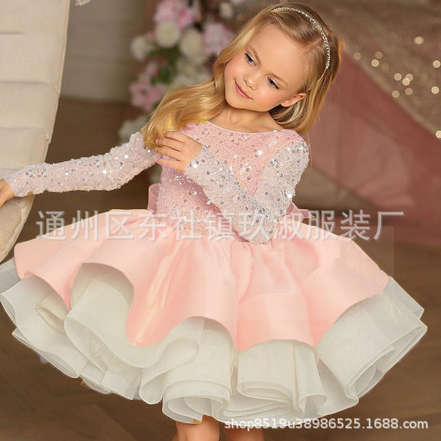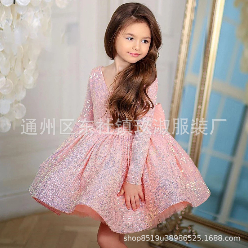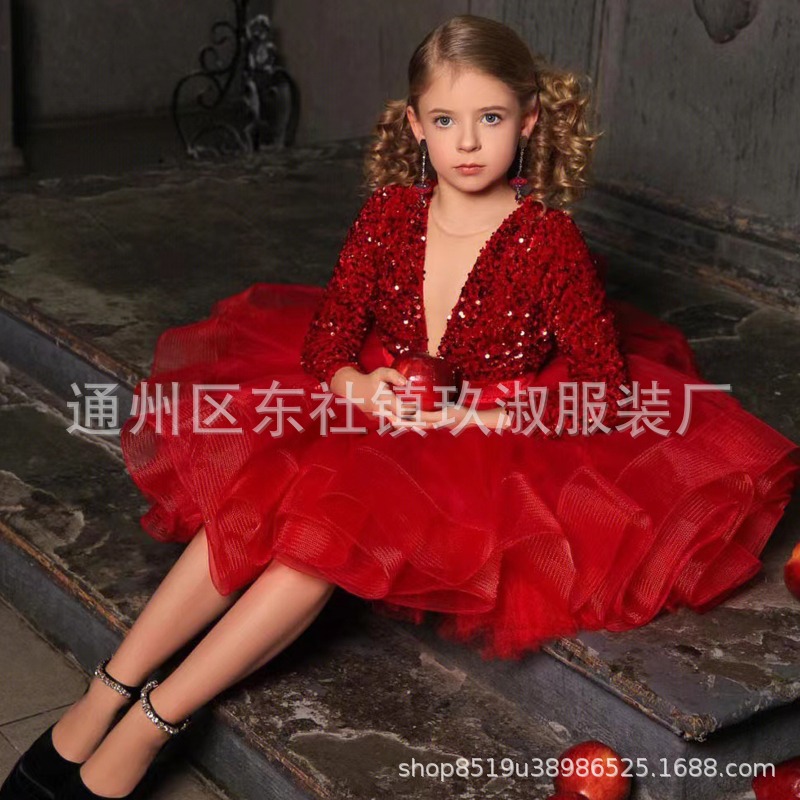 Детское Золотое платье, платье принцессы, банкетное платье для первого дня рождения девочки, платье для выступления на пианино-подиуме