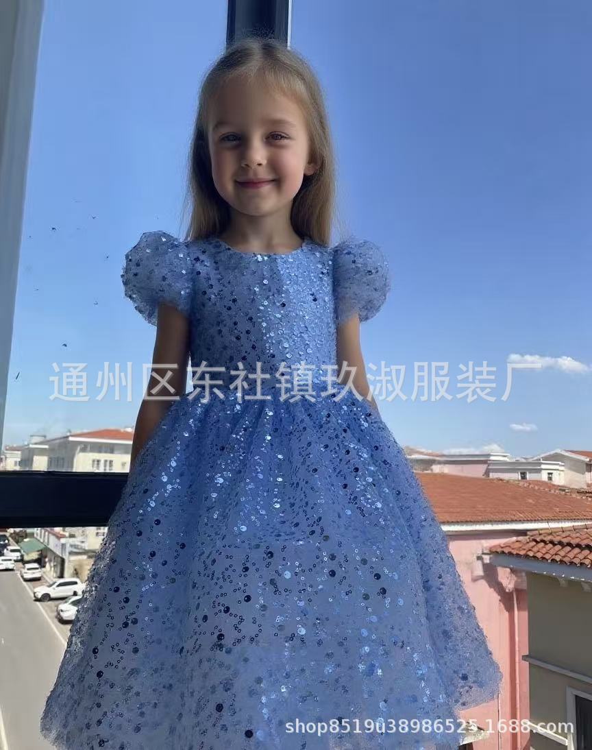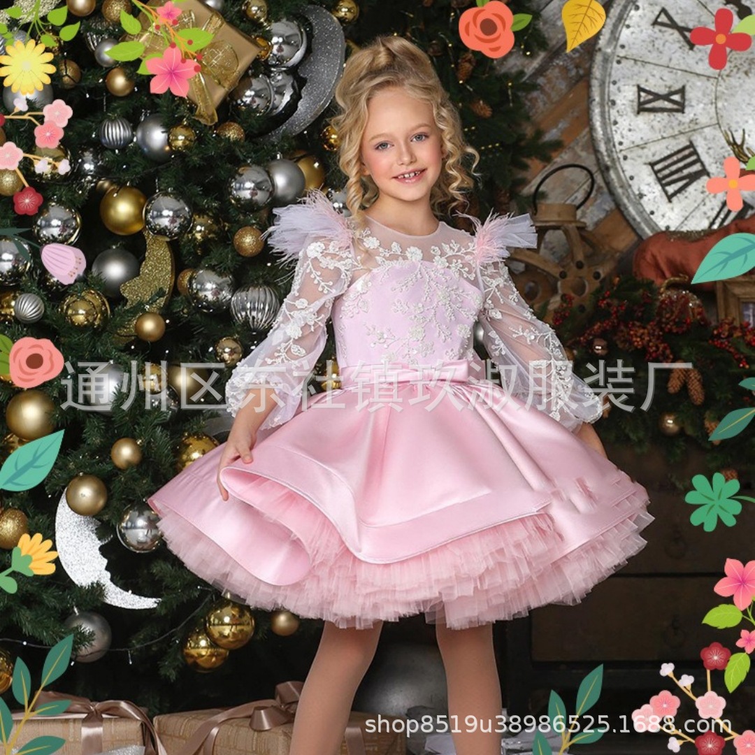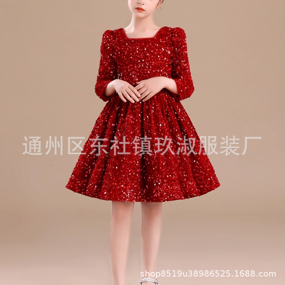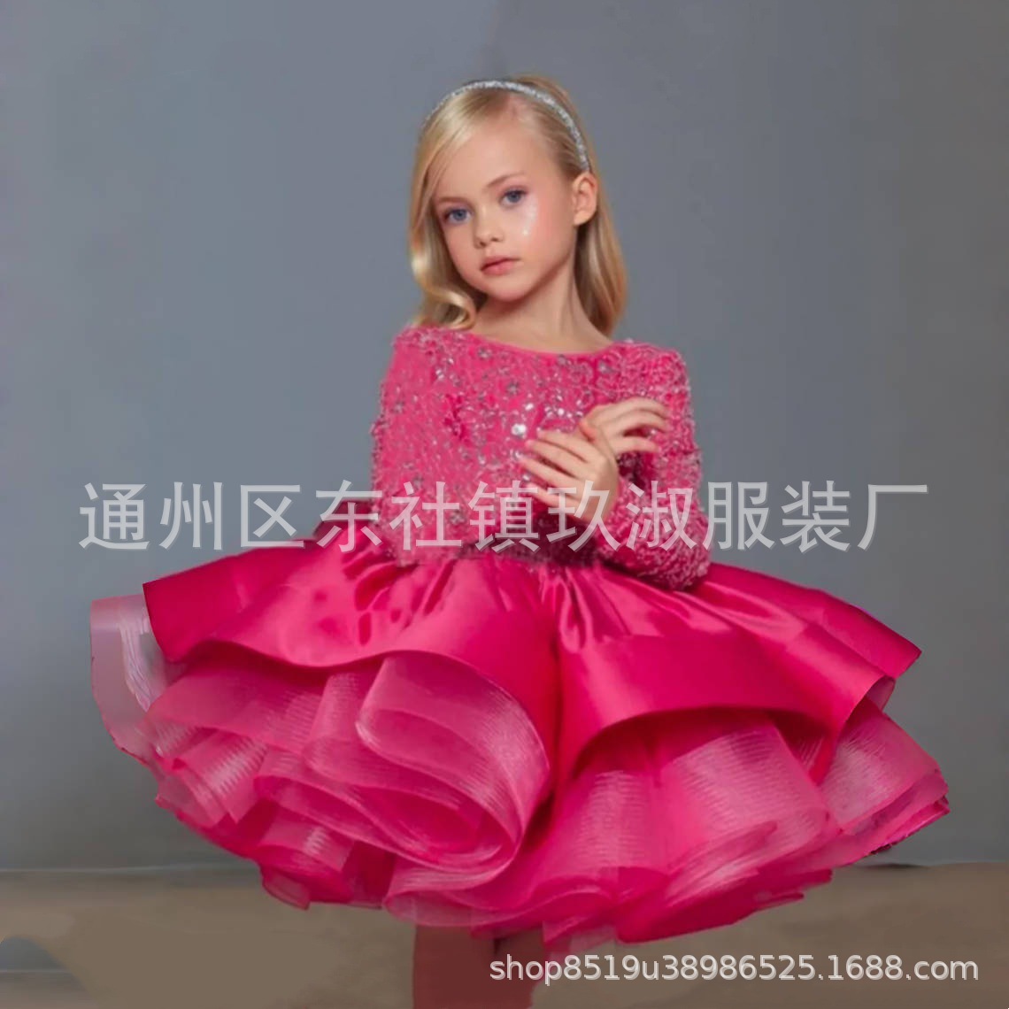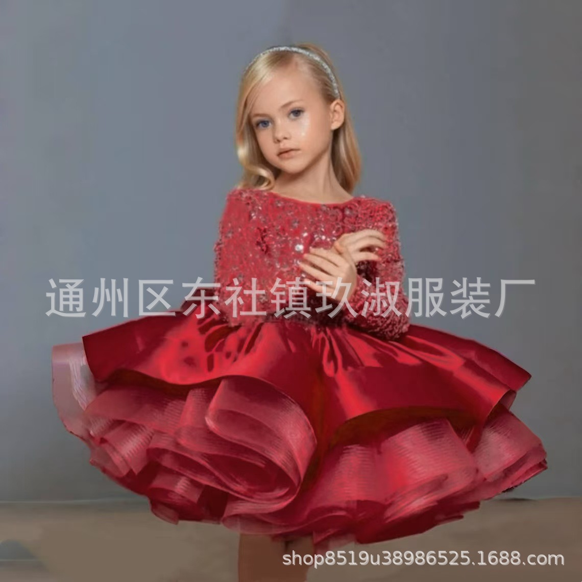 Детское Золотое платье, платье принцессы, банкетное платье для первого дня рождения девочки, платье для выступления на пианино-подиуме