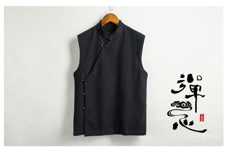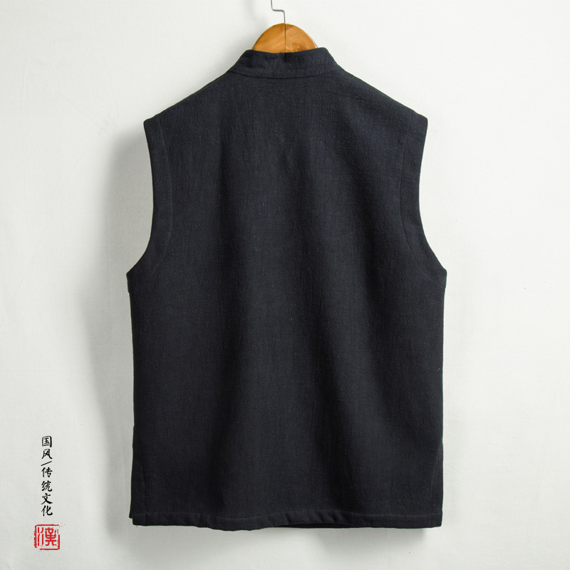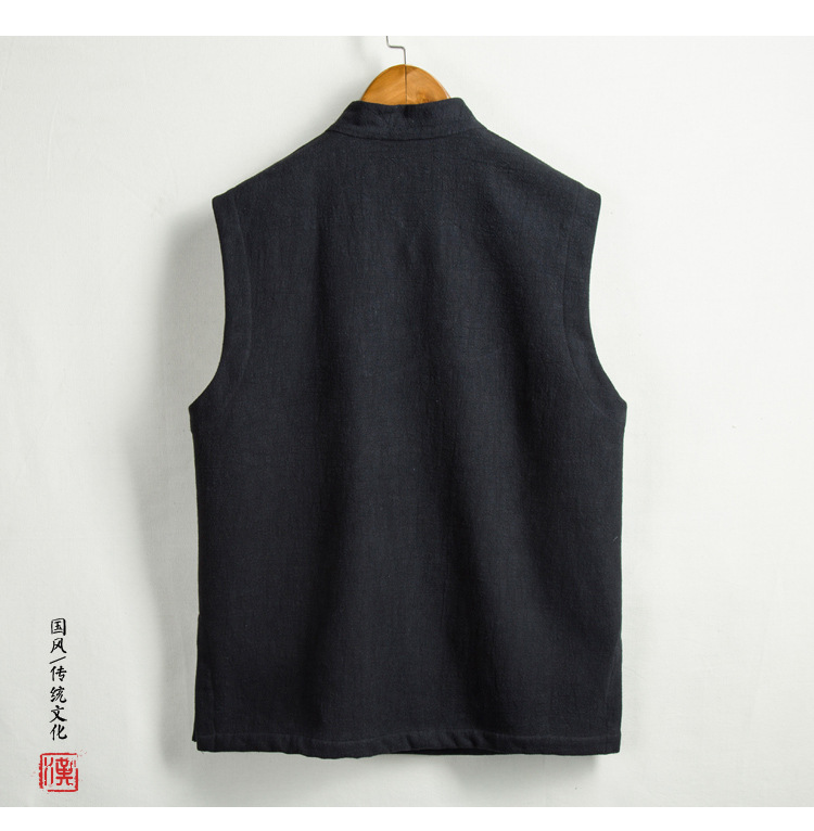 2022 осень-зима Новый Мужской винтажный хлопковый льняной костюм Tang в китайском стиле, мужской утолщенный жилет на флисовой подкладке, мужской жилет
