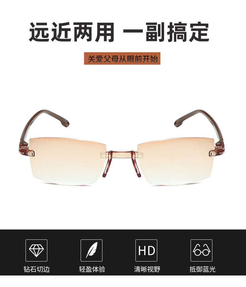 Новые двойные очки для пресбиопии с защитой от синего света и алмазной отделкой, бескаркасные Интегрированные Очки для пресбиопии высокого разрешения для дальнего и ближнего двойного назначения