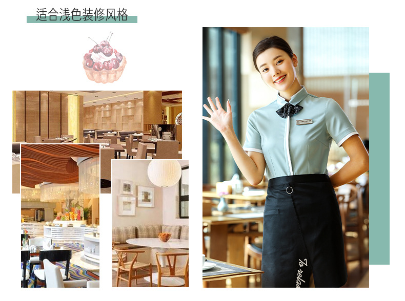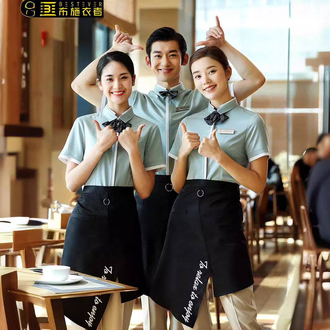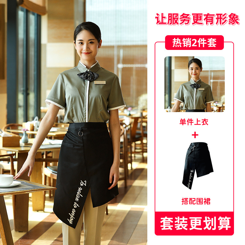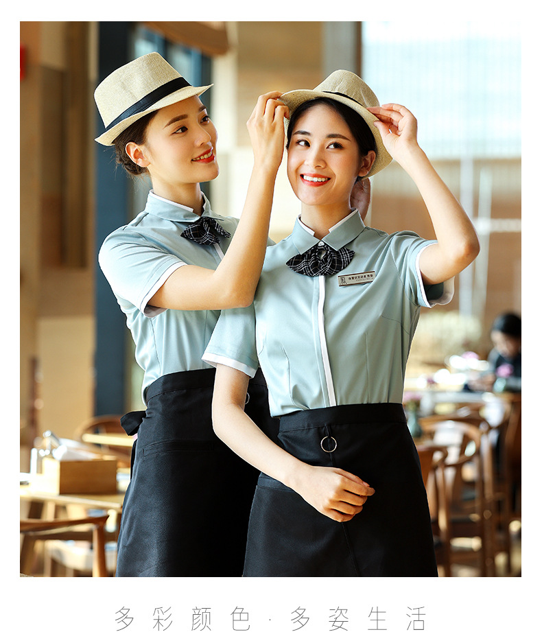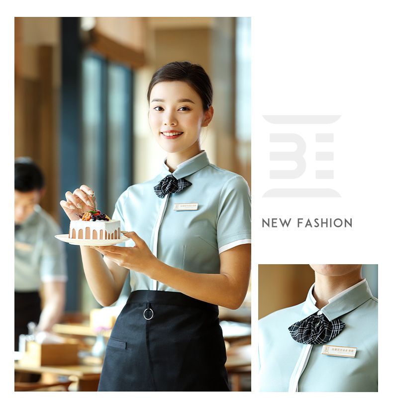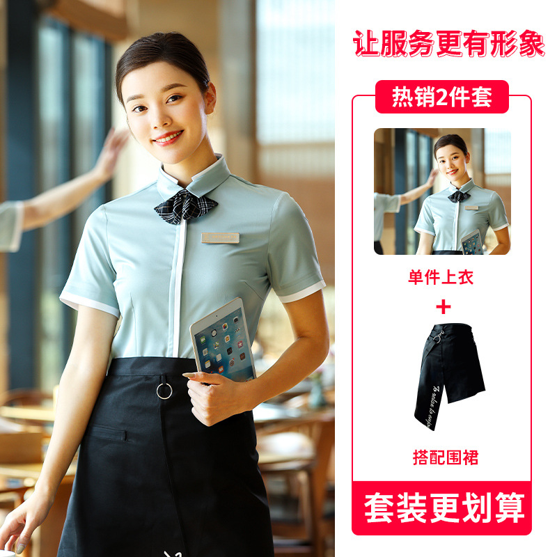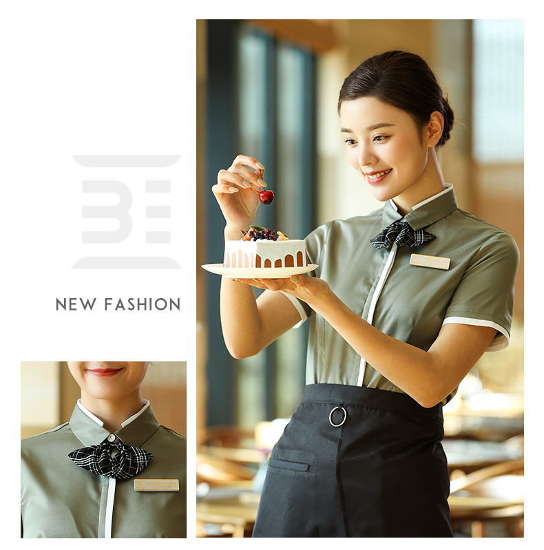 Одежда Магазин чая с молоком Кафе Официант Рабочая одежда Кейтеринг Отель Западный Ресторан Летний женский костюм с короткими рукавами