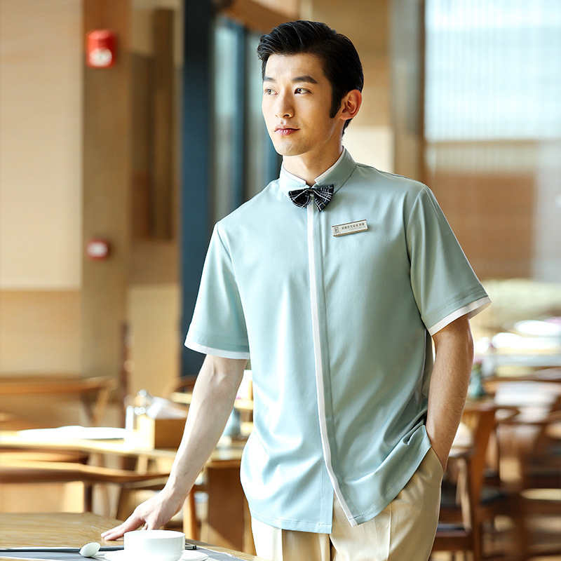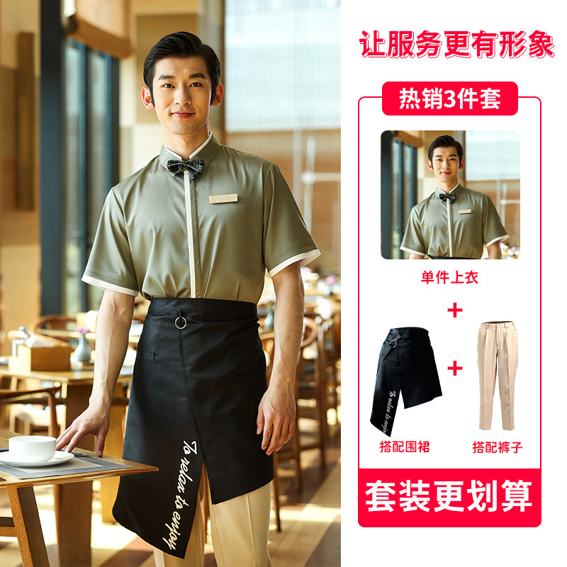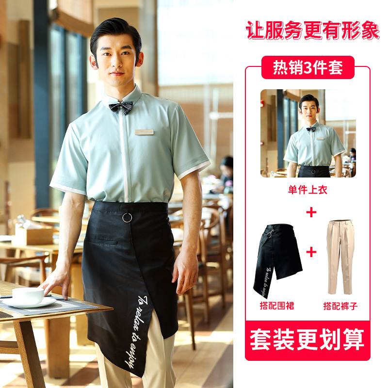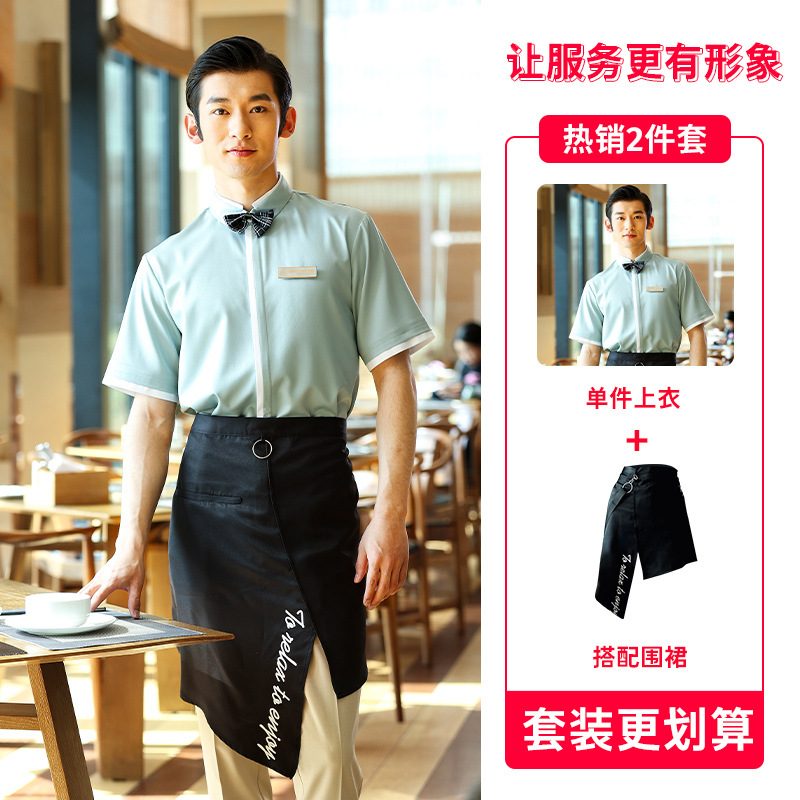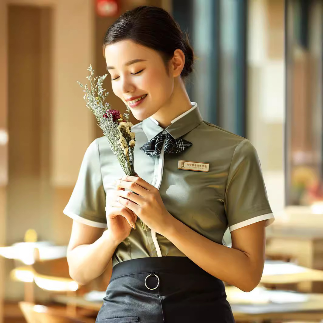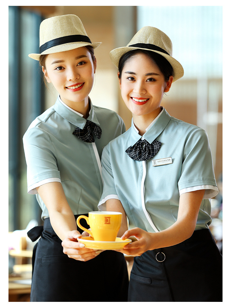 Одежда Магазин чая с молоком Кафе Официант Рабочая одежда Кейтеринг Отель Западный Ресторан Летний женский костюм с короткими рукавами
