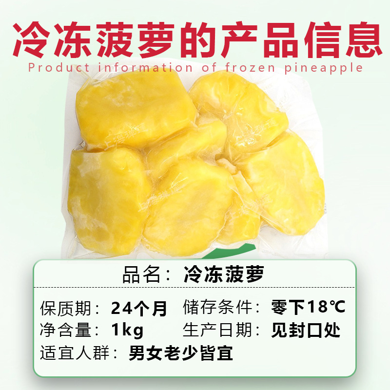 Свежезамороженная мякоть ананаса 1 кг, очищенные кусочки ананаса, фруктовый сок, джем, для коммерческого использования в кафе, магазинах молочного чая и кондитерских.