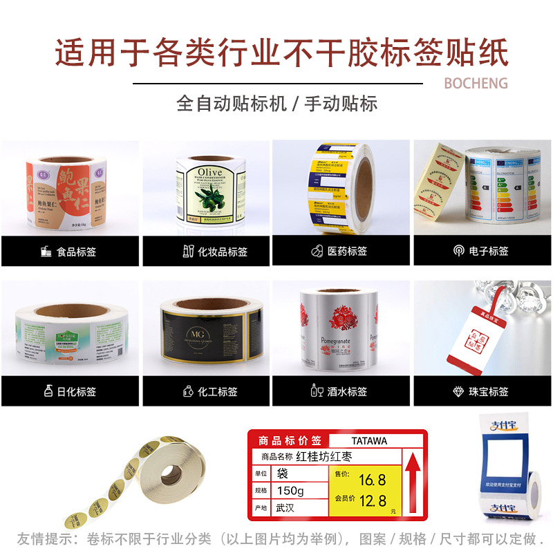 Кастомизация этикеток в рулонах, автоматическая этикетировочная машина, самоклеящаяся печать, ламинирование, мелованная бумага, горячее серебро, горячее тиснение, самоклеящаяся кастомизация