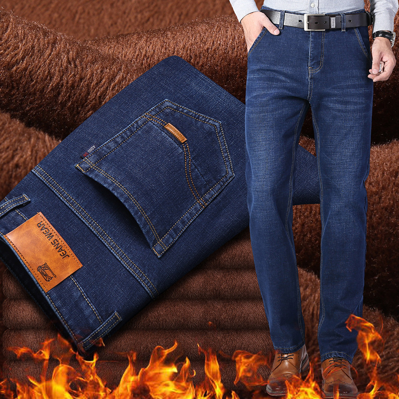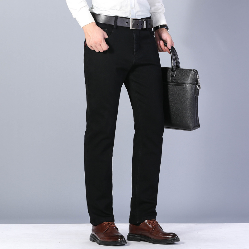 Мужские узкие джинсы стрейч-джинсы скинни, осенние модные черные прямые длинные брюки на флисовой подкладке, Мужские осенне-зимние