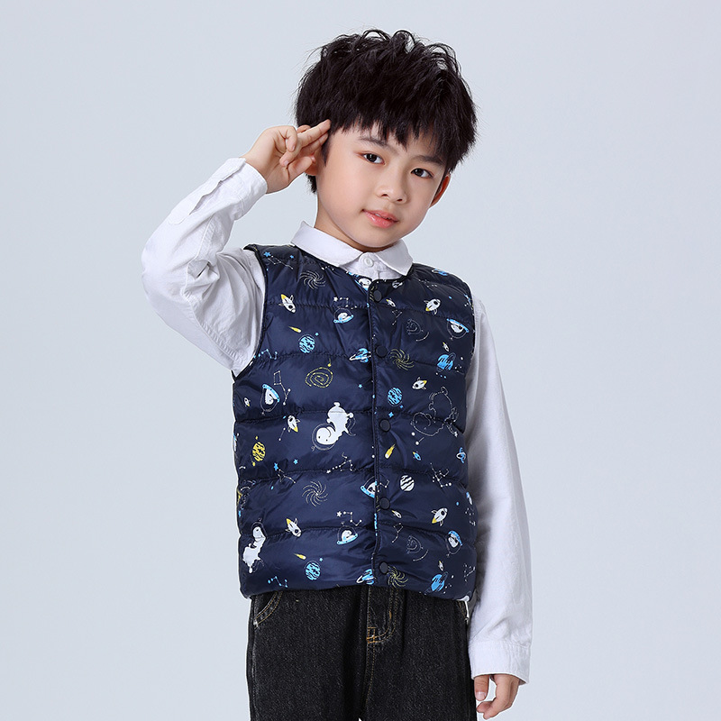 Детский пуховый жилет, 90% белый утиный пух, новая модель осень-зима 2025, для мальчиков и девочек, внутренняя подкладка, для детей среднего и старшего возраста, класс А