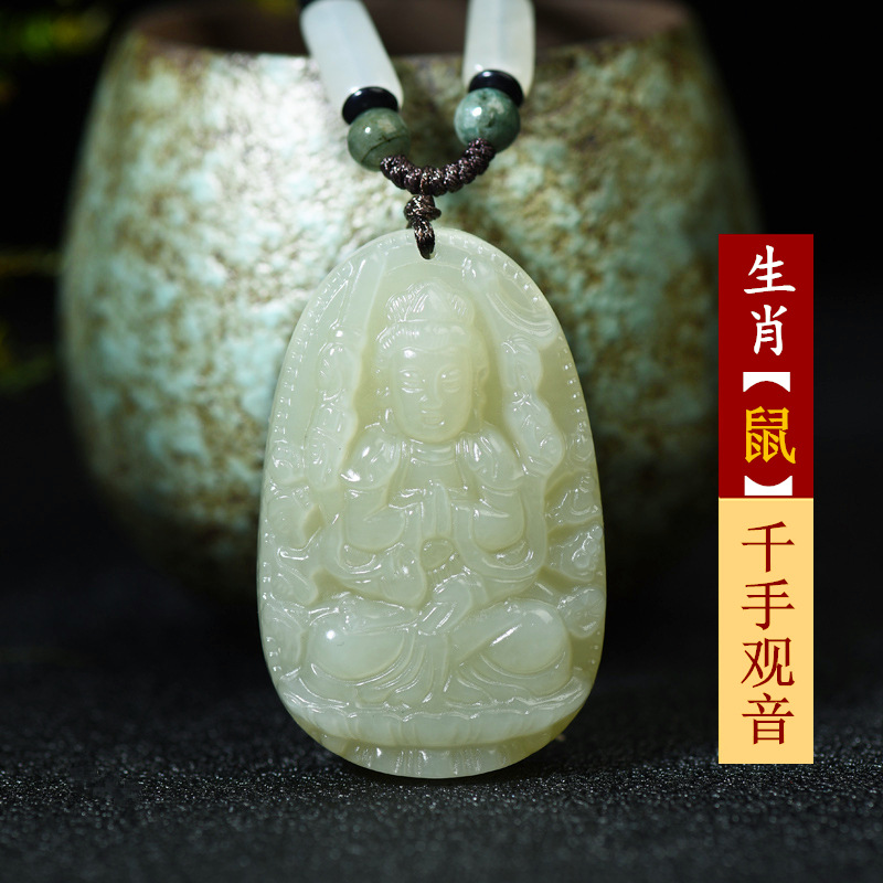 Натуральный нефритовый кулон Hetian Двенадцать зодиака Бог-хранитель восемь Benmingfo нефритовый кулон