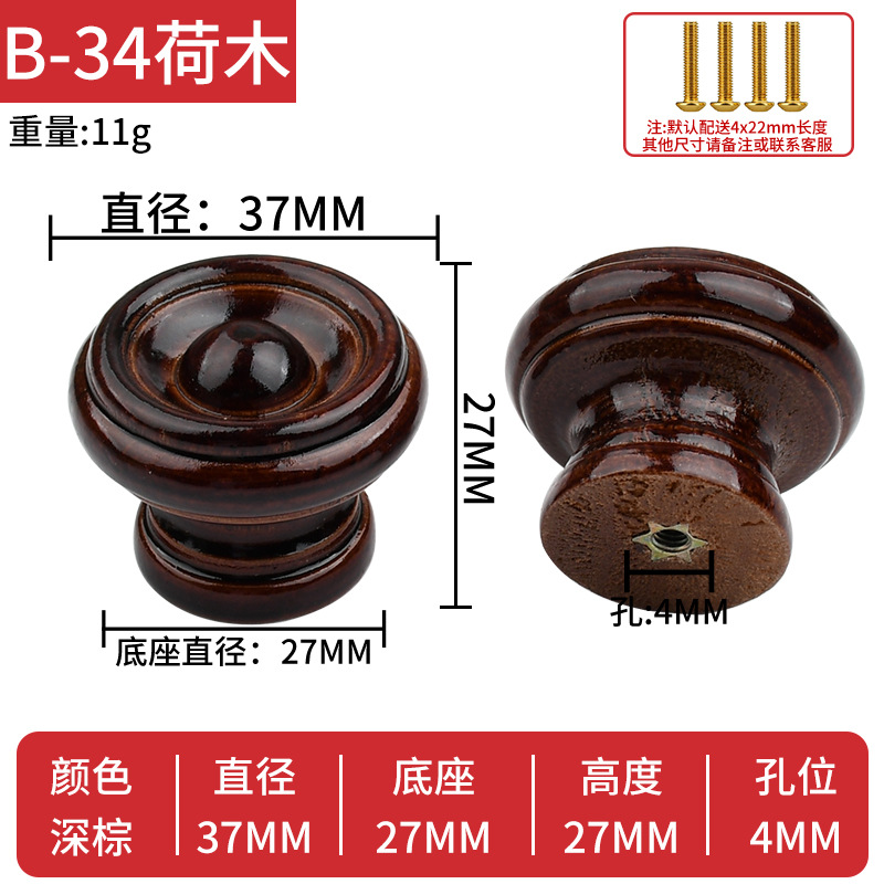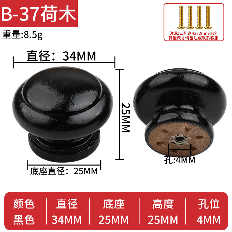 Деревянная ручка из цельного дерева с одним отверстием, дверца шкафа, ящик шкафа открытого монтажа, круглая цветная ручка из цельного черного ореха