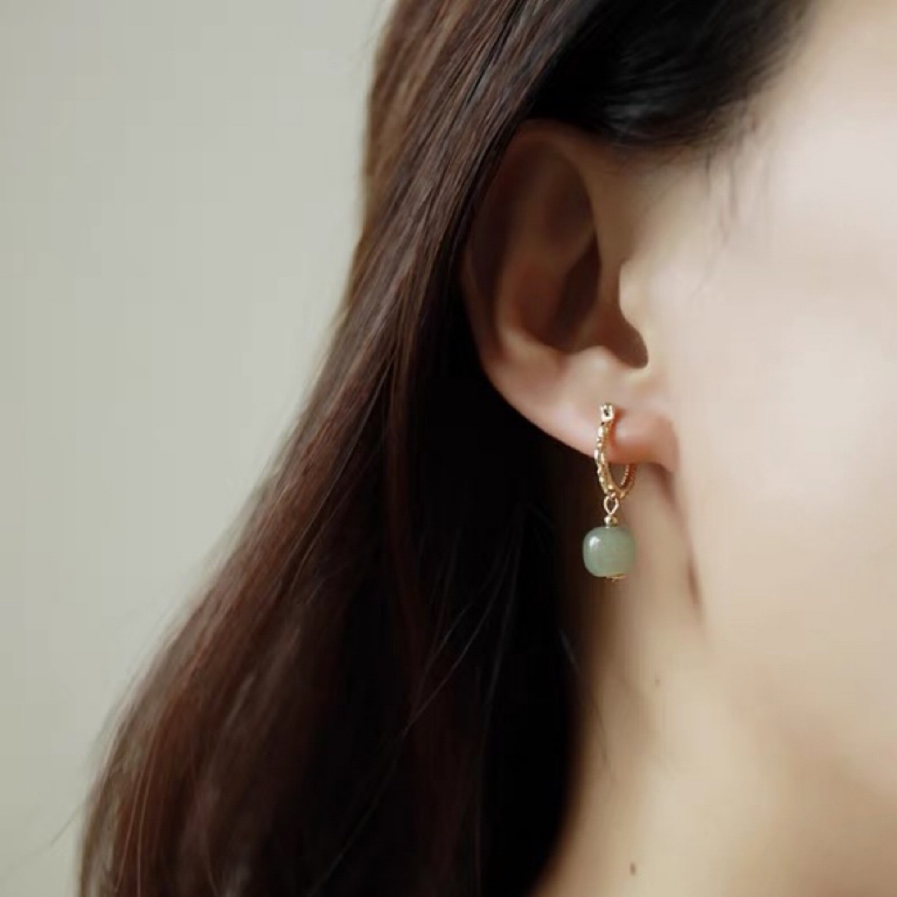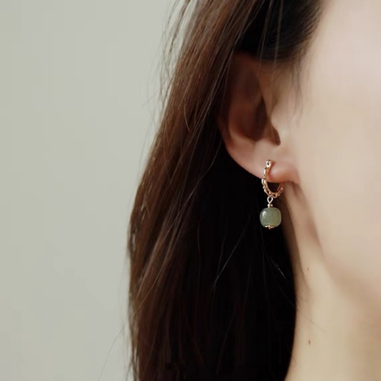 EH199-4 Серьги из натурального нефрита Хэтиан