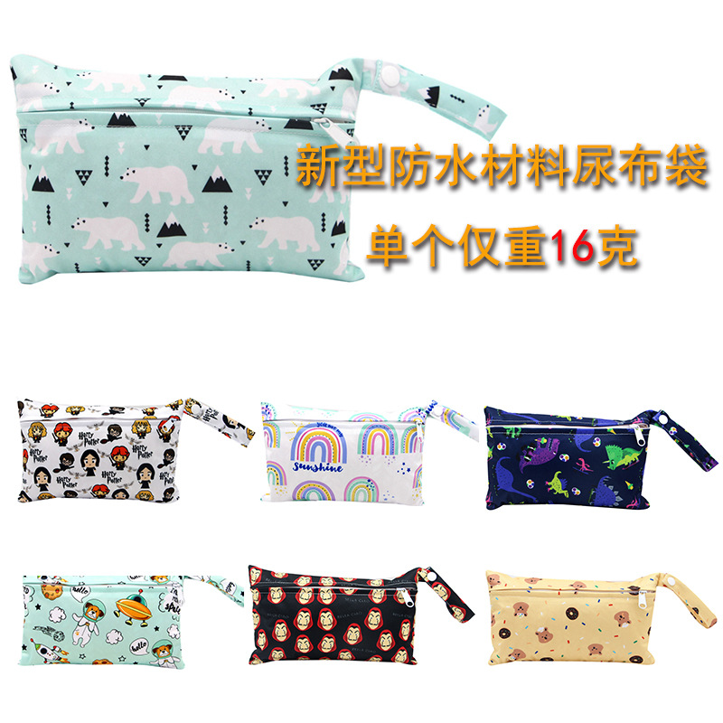 我们是自己工厂生产,款式有很多,陆续在上架,可以定制图案,我们的尿布袋用的是2022年的新面料,防水效果比以前的好,而且做到了小号只有15.7克,中号只有28.6克,大号55克左右,适合国外电商平台!!
