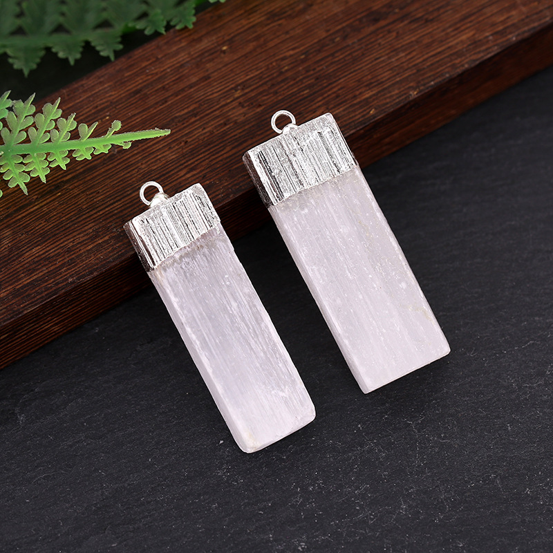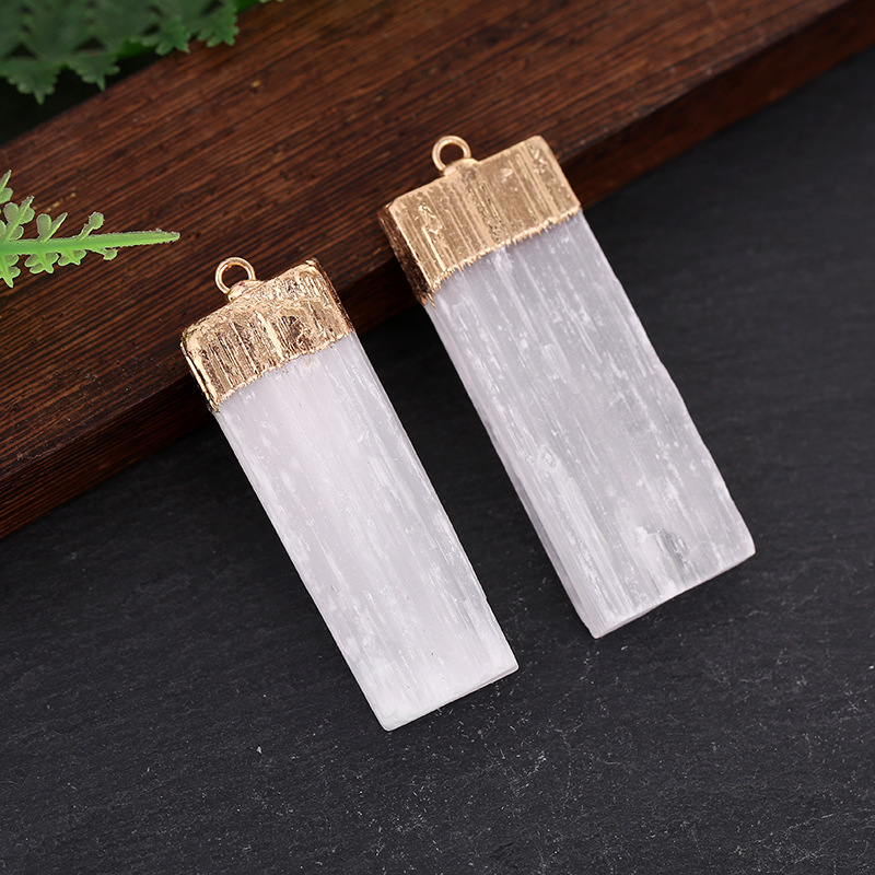 Натуральный гипсовый кулон хрустальный камень ожерелье нерегулярный Квадратный Кулон DIY ювелирные аксессуары трансграничная оптовая продажа