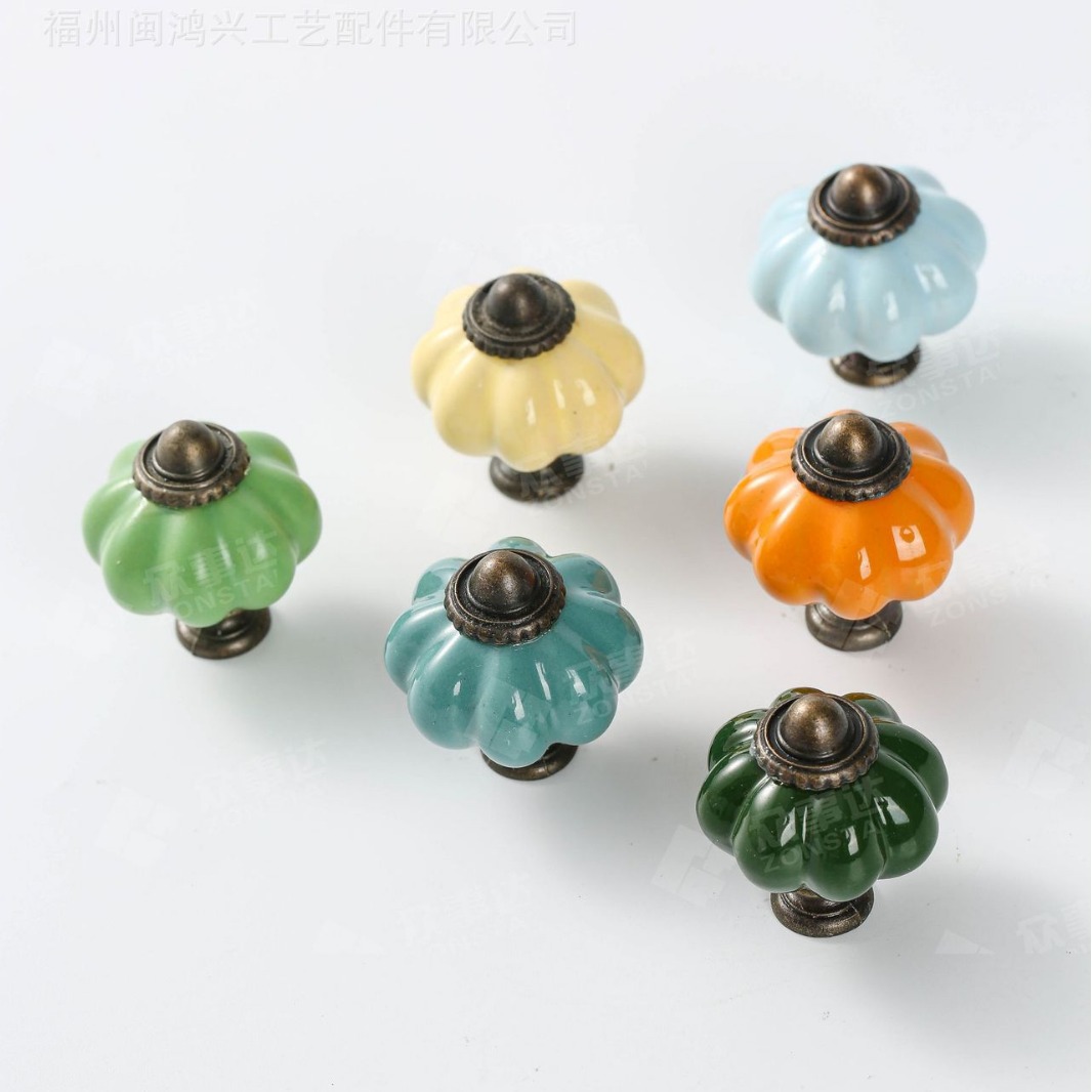 Ручка для шкафа и обувницы в европейском пасторальном стиле, красочная керамическая ручка в виде мультяшной тыквы, яркая мультяшная ручка