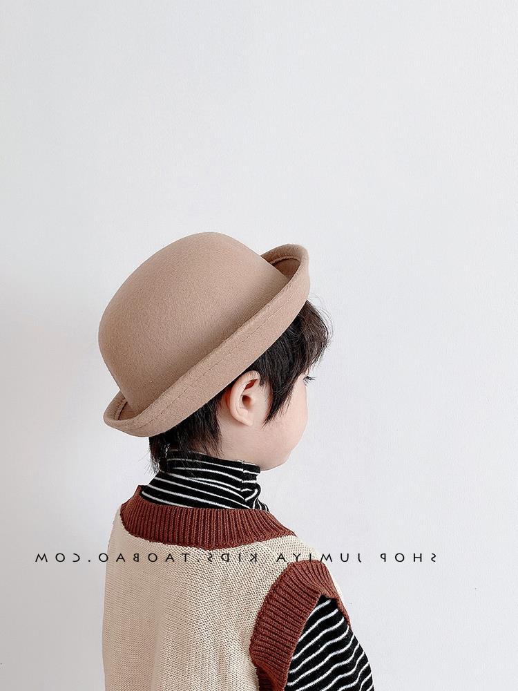 Южнокорейская детская шляпа, Британская мода, купол-котелок для мальчика, шерстяная модная шапка для маленькой девочки