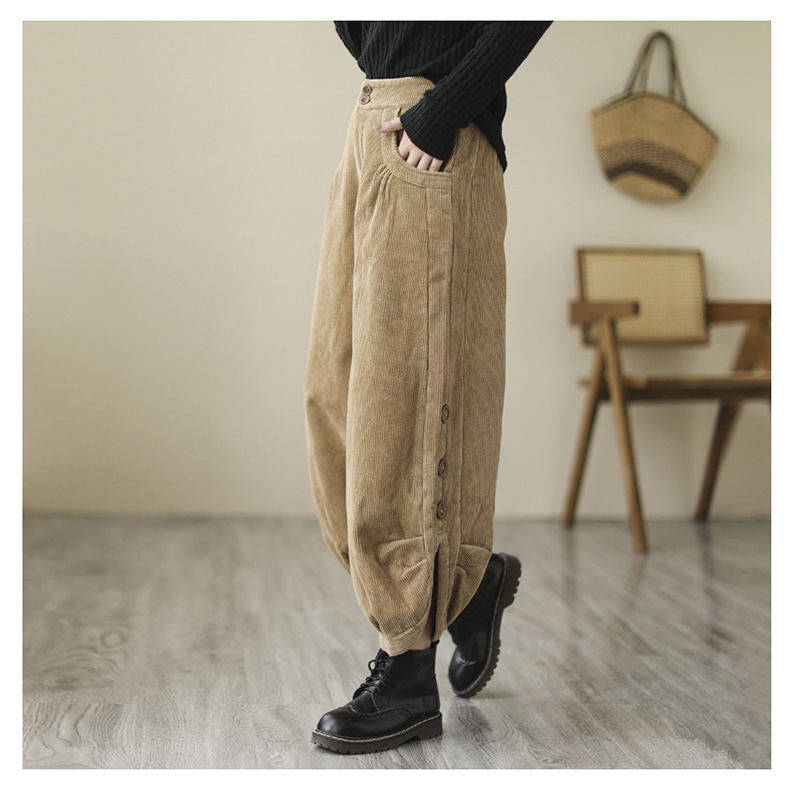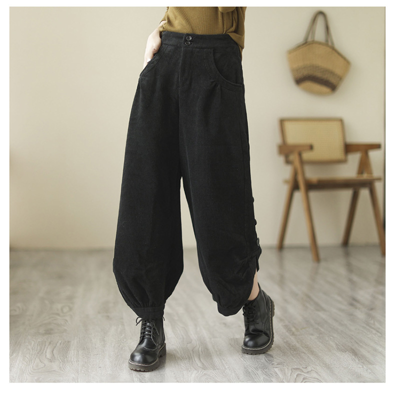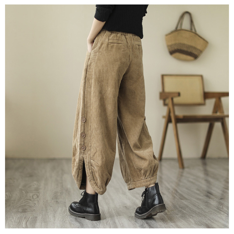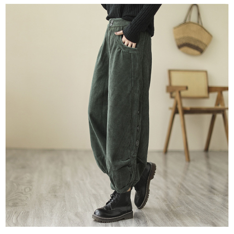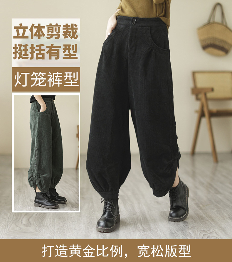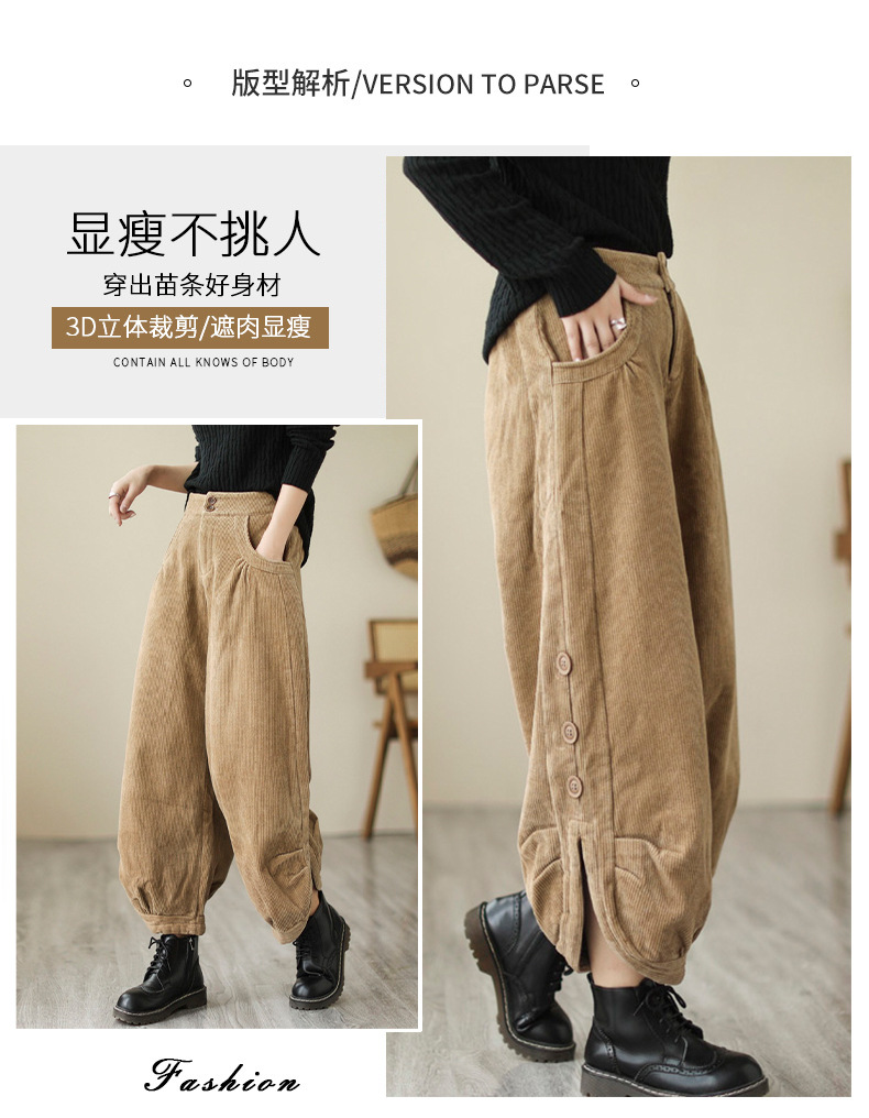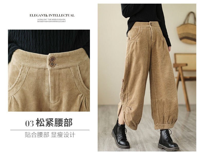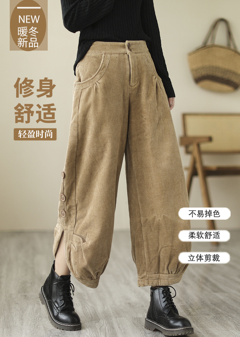 Новые осенне-зимние укороченные брюки-карго в корейском стиле больших размеров из утолщенного вельвета на флисовой подкладке с высокой талией
