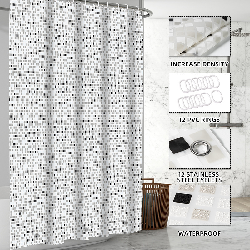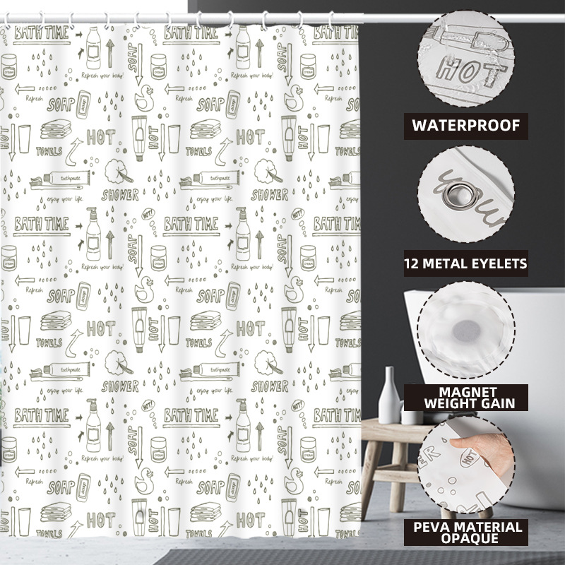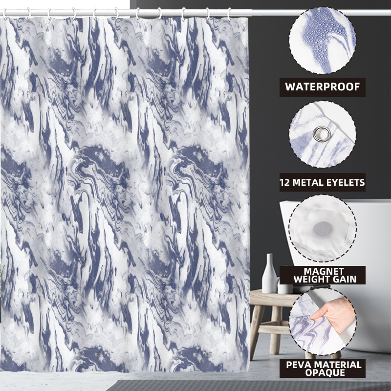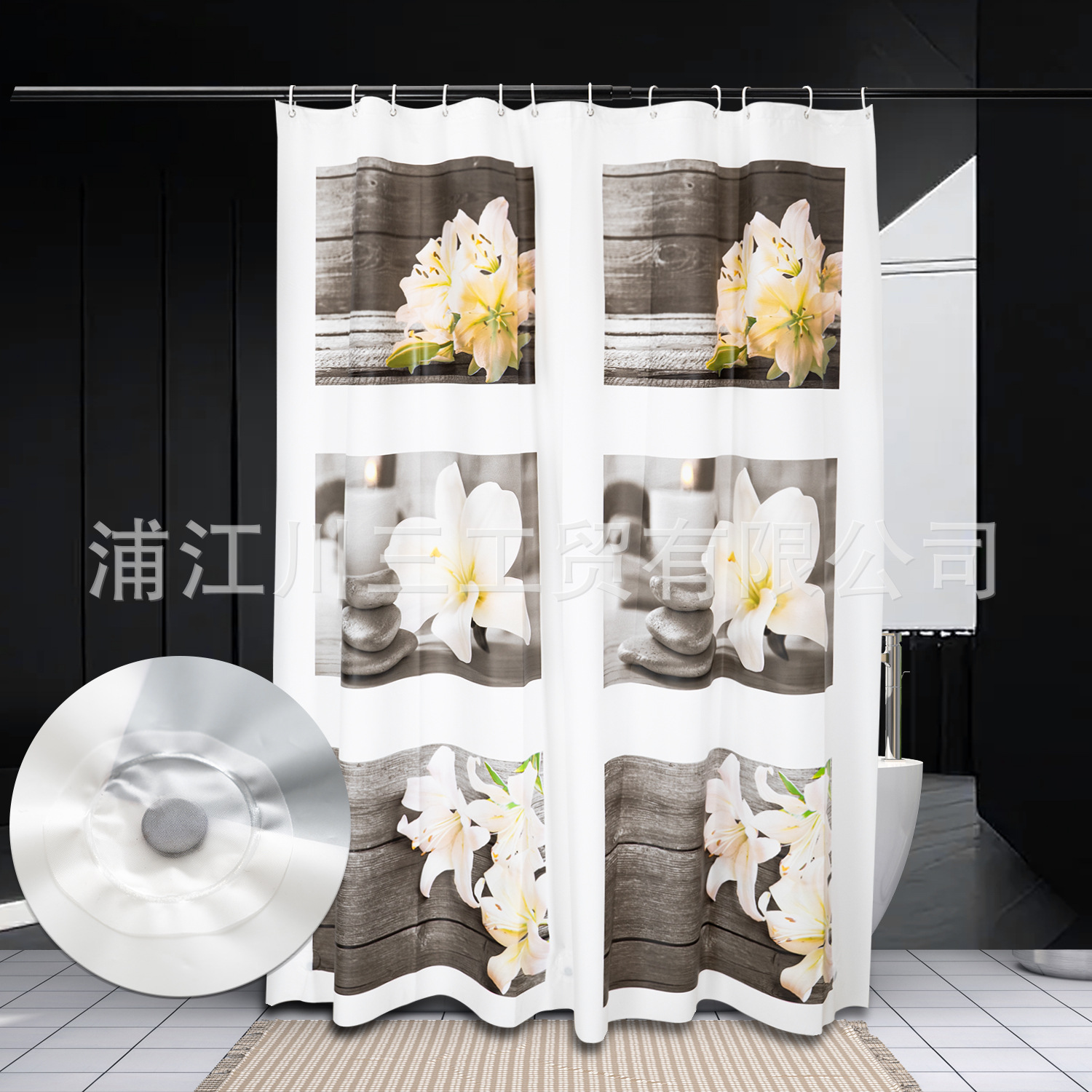 В наличии: трансграничная 3D-печатная занавеска для душа из ПЭВА, утолщенная, водонепроницаемая, устойчивая к плесени, перегородка для ванной с крючками в комплекте.