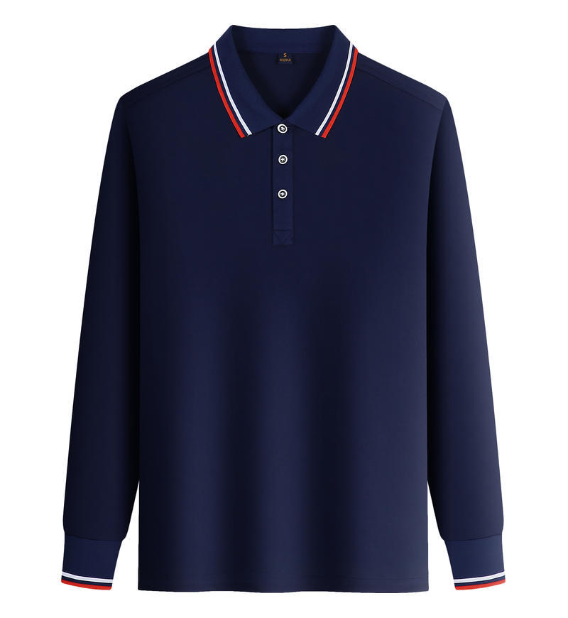 Мужская рубашка-поло с длинным рукавом и воротником, на заказ, для бизнеса и повседневной носки, из смесовой ткани