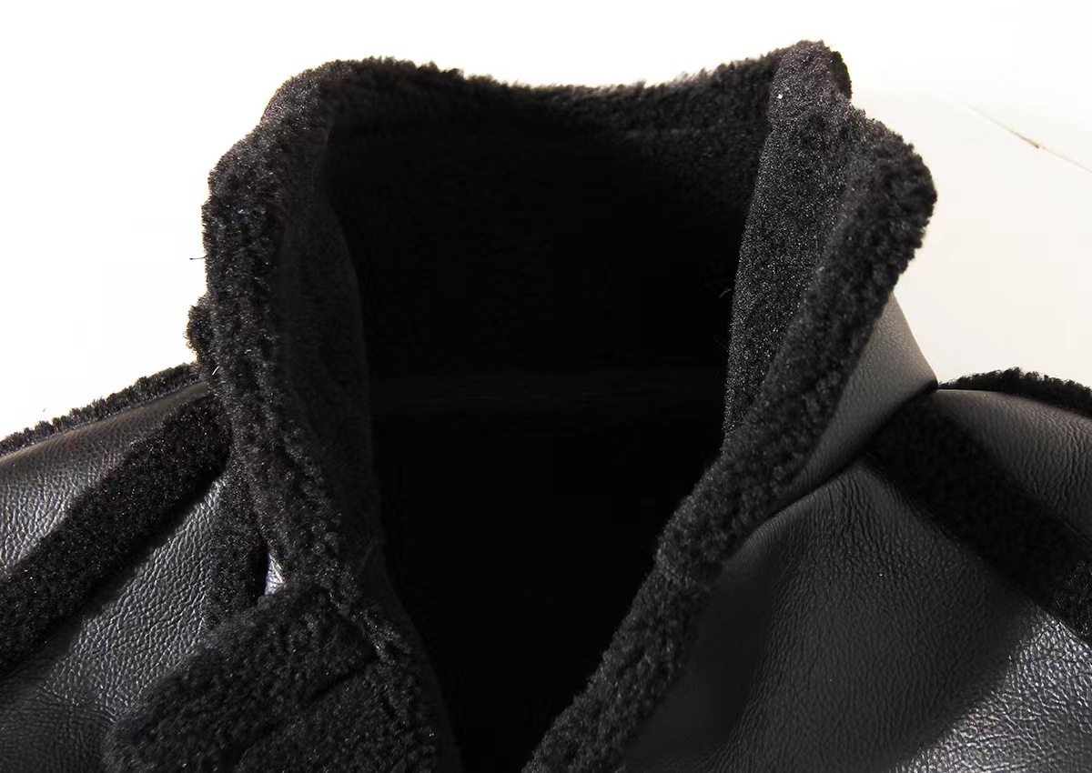 Ищу фабрику Зимний дизайн Sense Самолет Пряжка Свободный утолщенный мех Один воротник-стойка Короткая мотоциклетная куртка из искусственной кожи