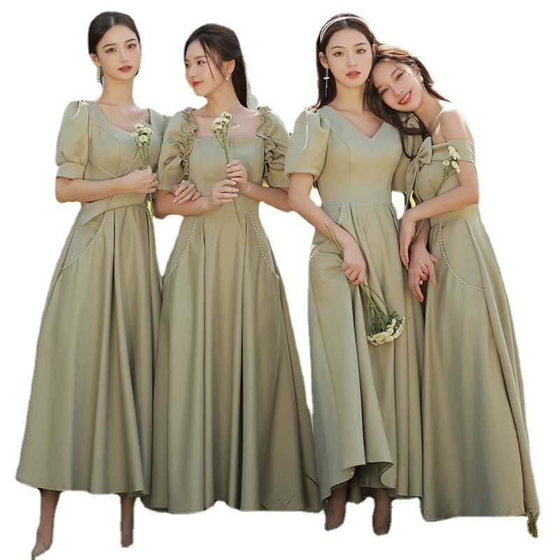Атласное платье для подружек невесты 2024 новый летний темперамент вечернее платье юбка