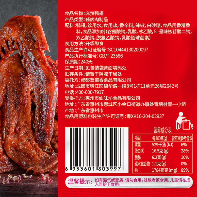 Оптовая продажа: Утиные ножки Shudaoxiang 40г, Утиные крылышки 35г, Сычуаньские и чунцинские закуски, готовые к употреблению деликатесы, мелкие тушеные блюда, для супермаркетов