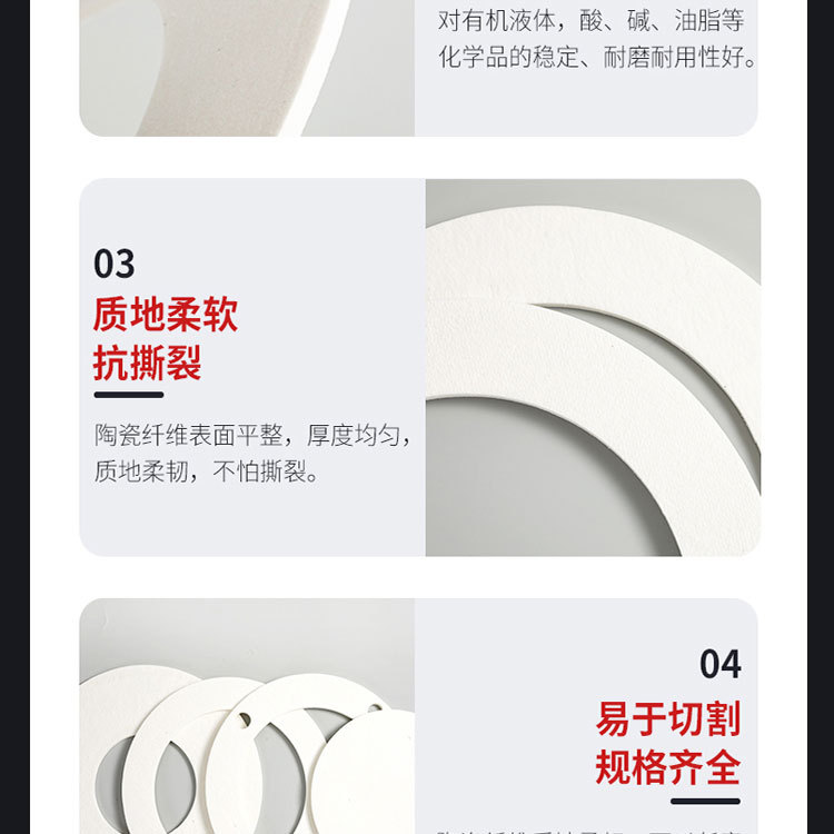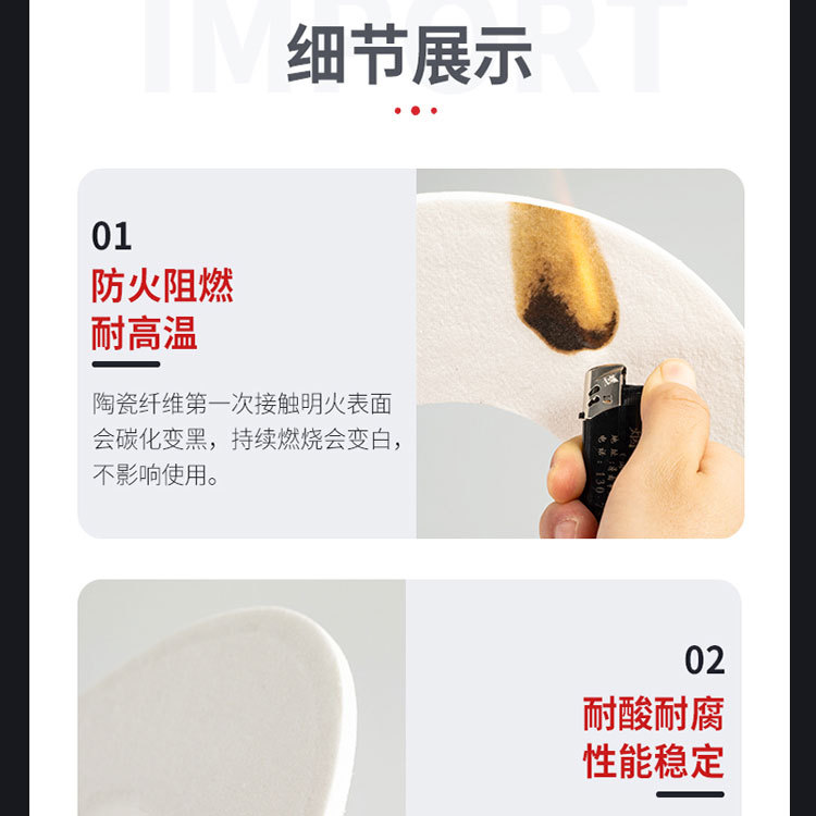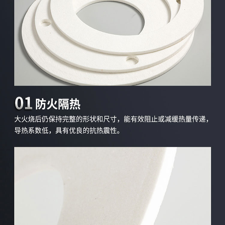 为非脆性材质,强度高、尺寸准确、可根据客户需求制作各种形态,具有良好的耐火隔热效果,耐温度1260度
