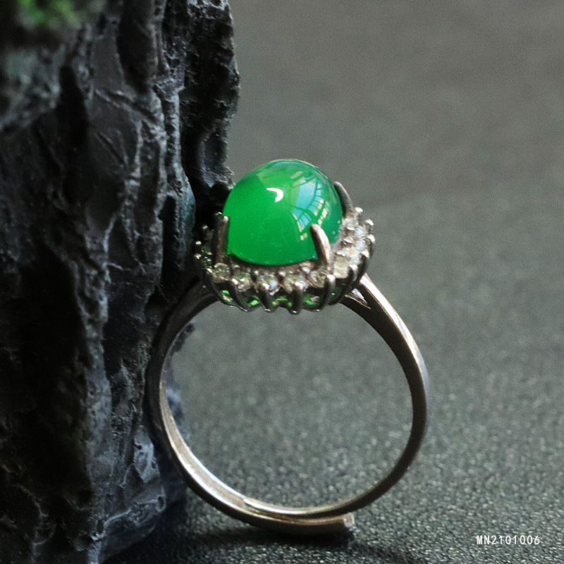 Кольцо с хризопразом, инкрустация серебром S925 (MN2101006)