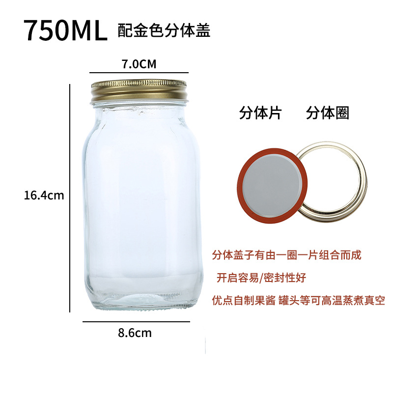 Желтый персик консервированная бутылка стеклянная высокотемпературная устойчивая варенье запечатанная Сплит бутылка оптовая стеклянная бутылка для хранения меда соленья бутылка