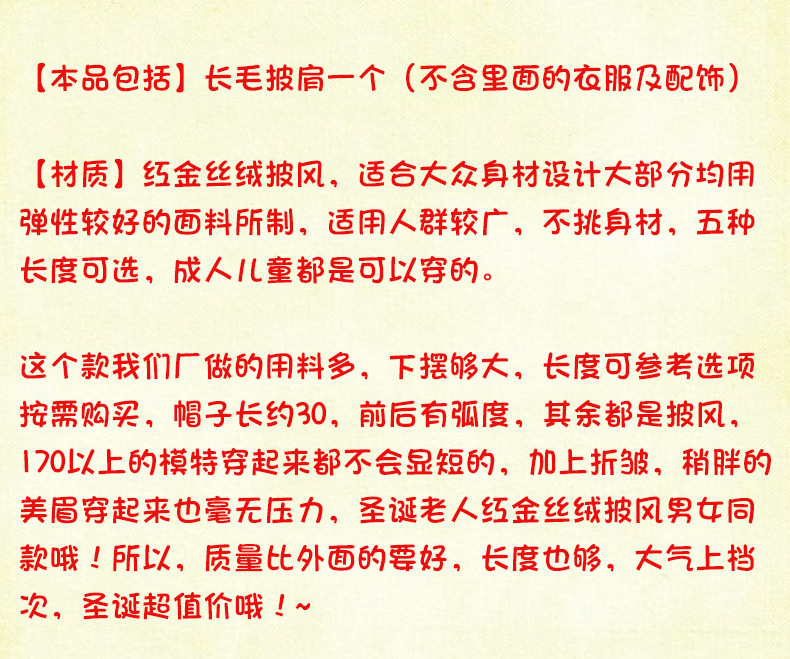 Рождественская шапка-накидка с шариком; Рождественская накидка с капюшоном и завязками (без помпонов); Длинная прическа; Рождественский плащ + веревка в форме шара; Рождественская накидка, 90 см, без помпонов. Незначительные дефекты, возврату и обмену не подлежит.