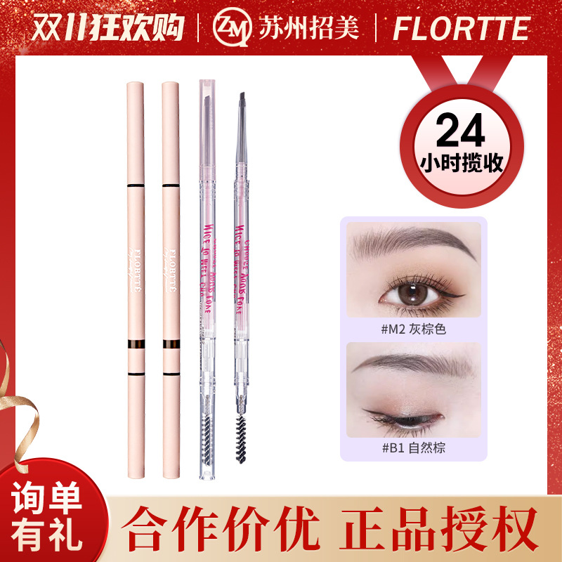FLORTTE/FLORTTE Карандаш для бровей Двусторонний ультратонкий карандаш для бровей с мелом и цветком падения Натуральный тонкий треугольный карандаш для бровей