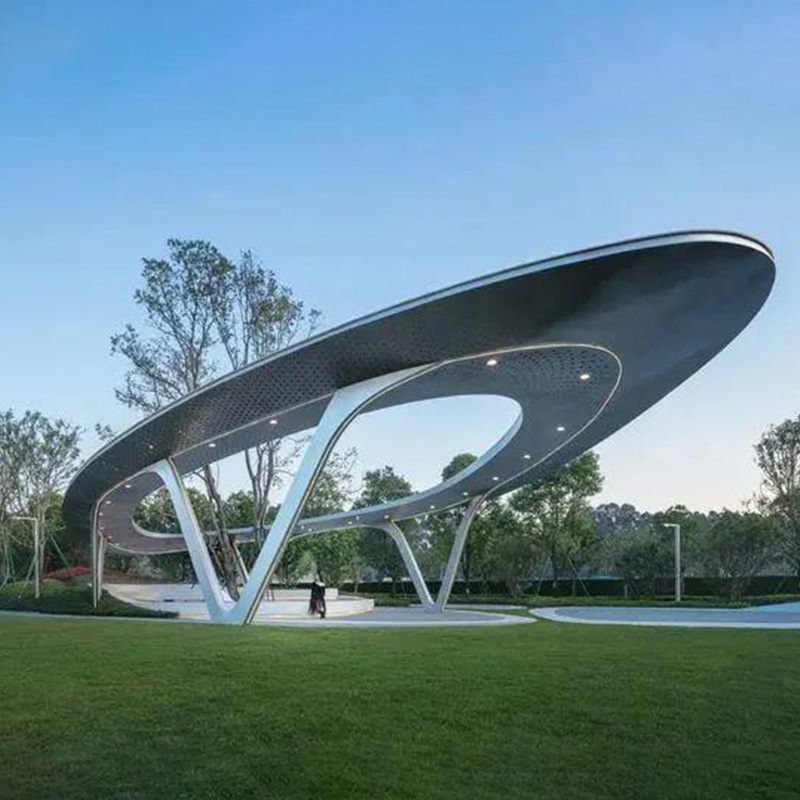 Наружная пергола из нержавеющей стали, ландшафтный коридор со стальной конструкцией специальной формы, современный металлический павильон, кованая скульптура в форме дерева.