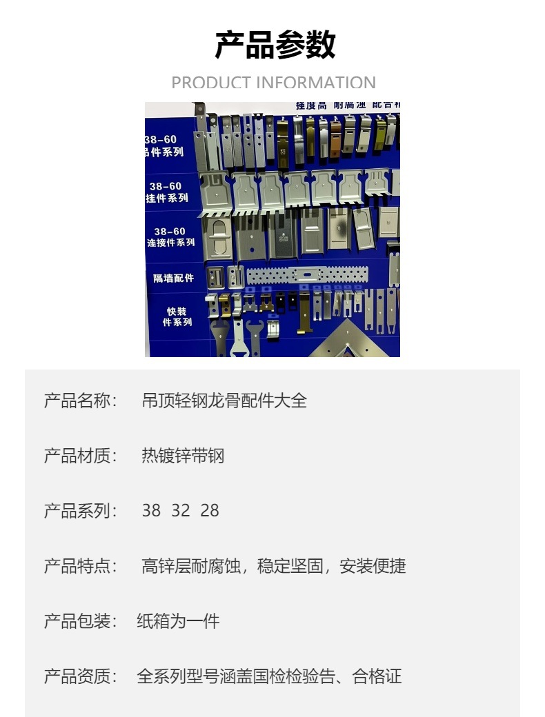 50 основных кранов; 50 Пилон; 50 пар; 50 Основное соединение; 50 поддержка; 7 слов 50 прямо висит; 7 слов 38 прямо висит; 60 основной кран; 60 Пилон; 60 Основное соединение; 60 Оплата; 60 анти-50 подвесной; U-образный монтажный зажим; Потолки 38 Окрашенная алюминиевая подвесная вилка; Потолки 50 окрашенная алюминиевая подвесная вилка; Перегородка стены 75 карта поддержки; Раздел Карта поддержки 100; Анти-трещин потолок Угловой протектор; Анти-трещин плоский Угловой протектор; 38 Быстрая подвеска; 50 быстрый подъем
