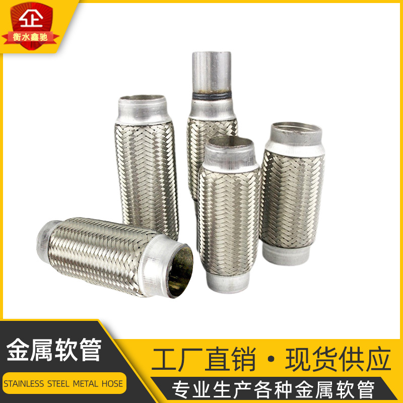 汽车排气波纹管又称汽车排气管软管,它安装于发动机排气支管和消声器之间的排气管中,使整个排气系统呈挠性联接,从而起到减振降噪、方便安装和延长排气消声系统寿命的作用。它主要用于轻型车、微型车和客车,其结构是单双层波纹管外覆钢丝网套,两端直边段外套卡环的结构,为使消声效果更佳,波纹管内部可配伸缩节或网套。材质:主要材质是不锈钢,卡套和接管材质可为不锈钢或镀铝钢。
