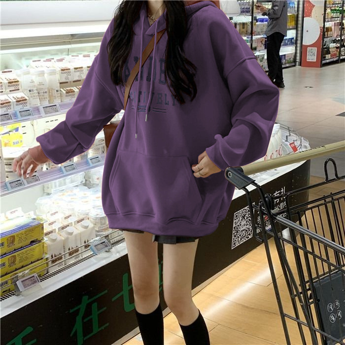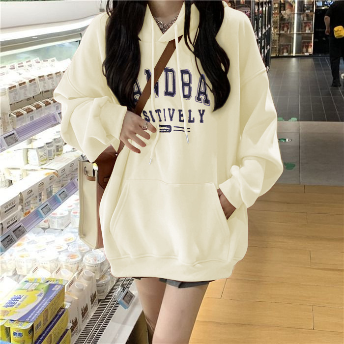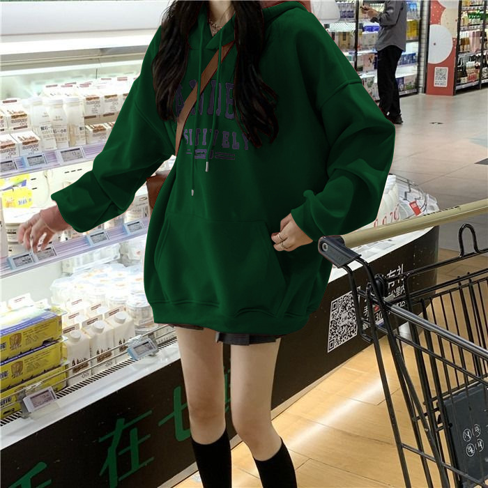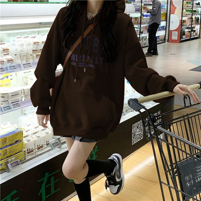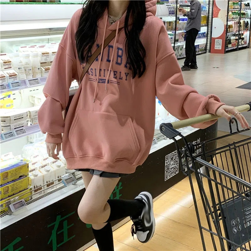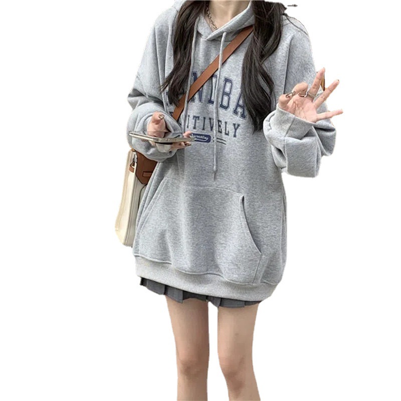 Толстая толстовка с капюшоном на флисовой подкладке для женщин, осень и зима 2024, новая свободная корейская модная студенческая куртка, модный топ с длинными рукавами.