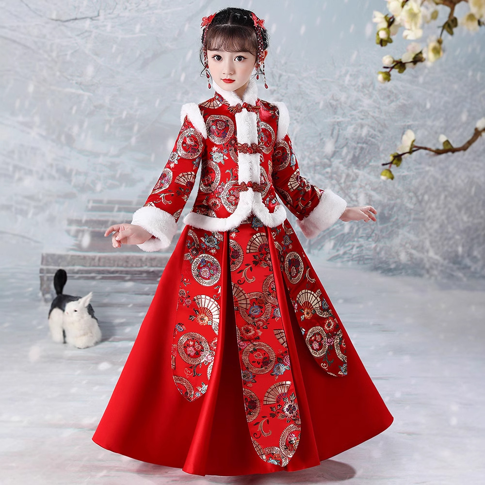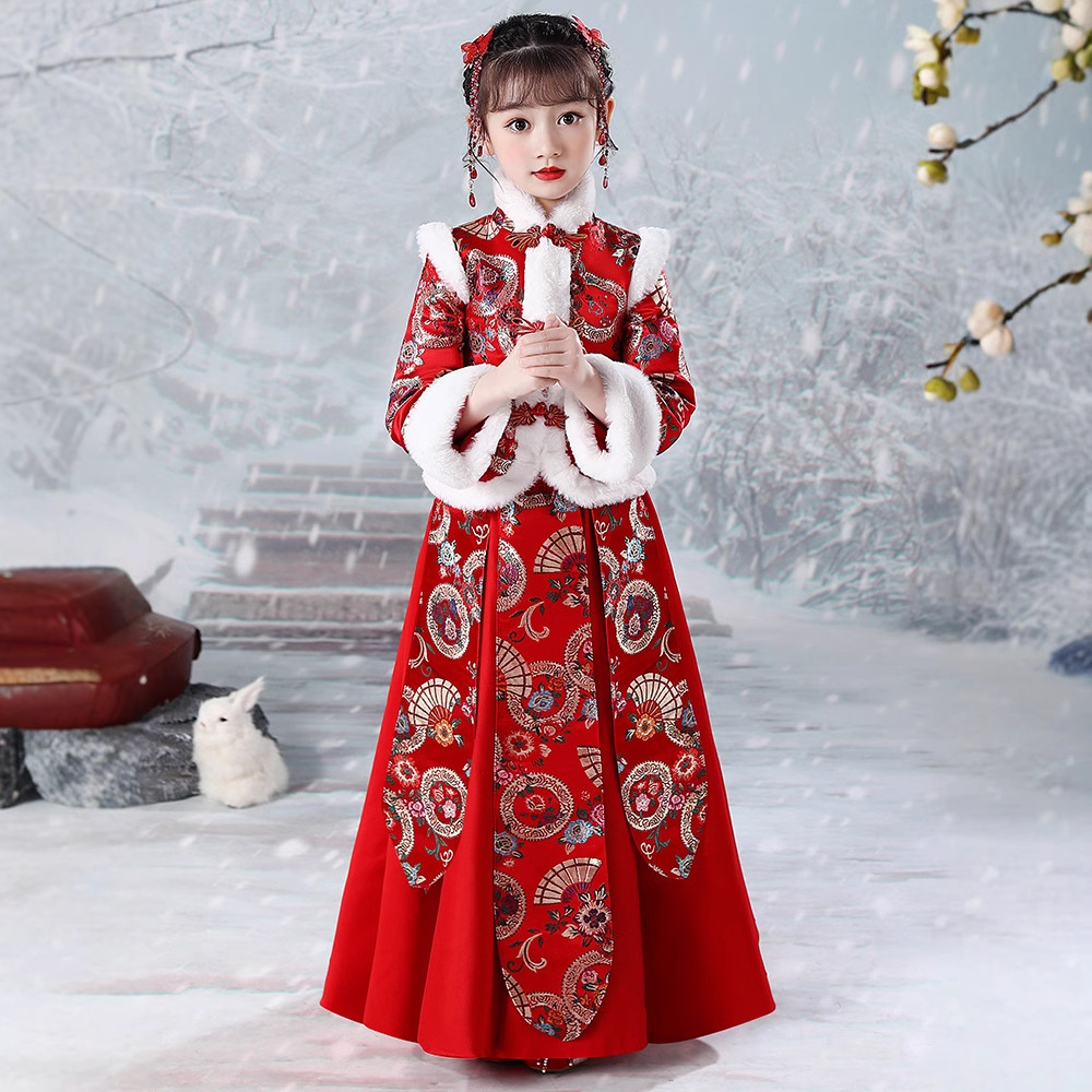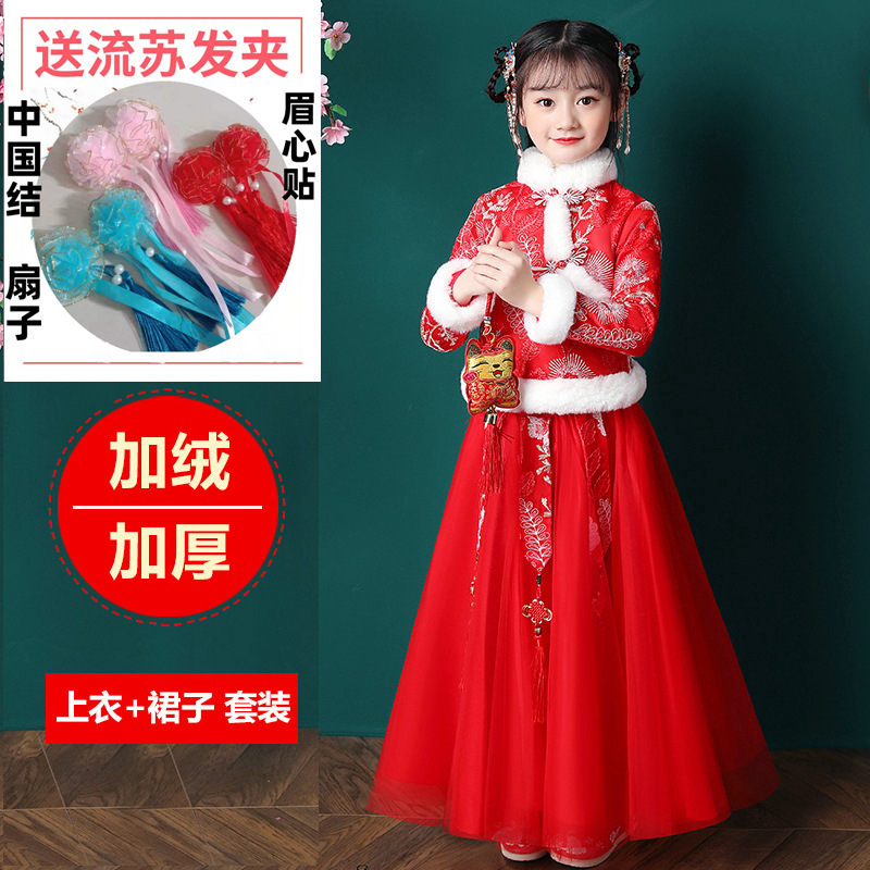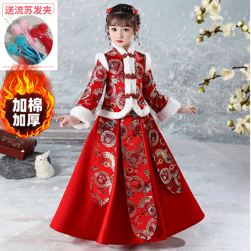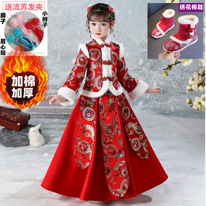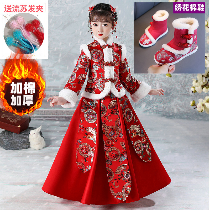 Детский костюм Ханьфу YX, китайский наряд в стиле Тан, красный новогодний наряд для малышей, зимняя одежда для детей, утепленный древний костюм для зимы.
