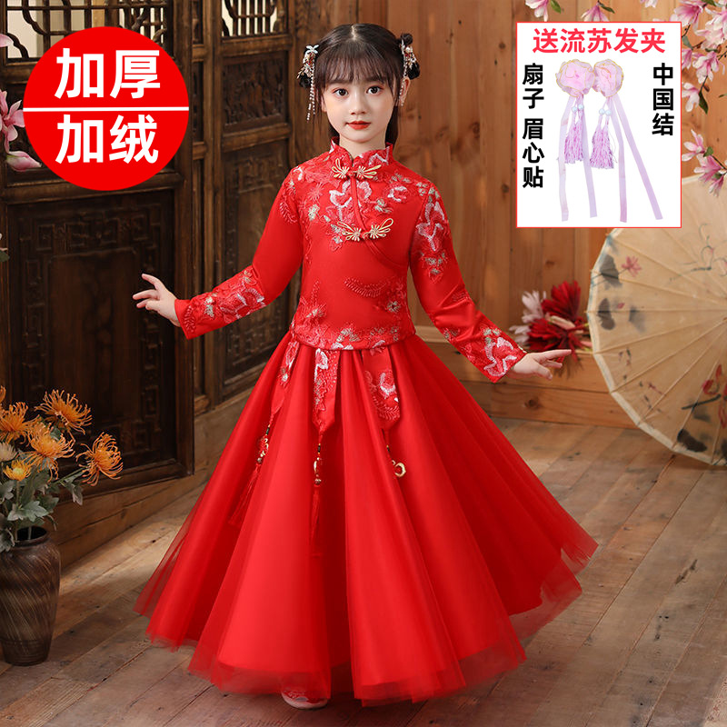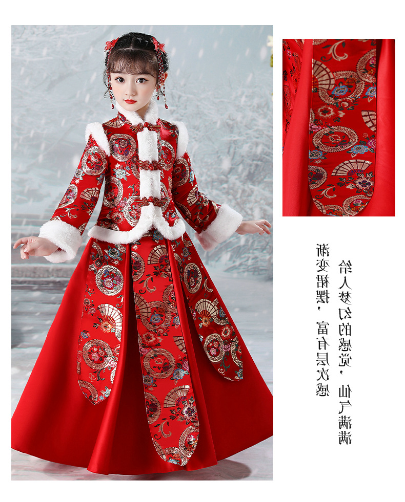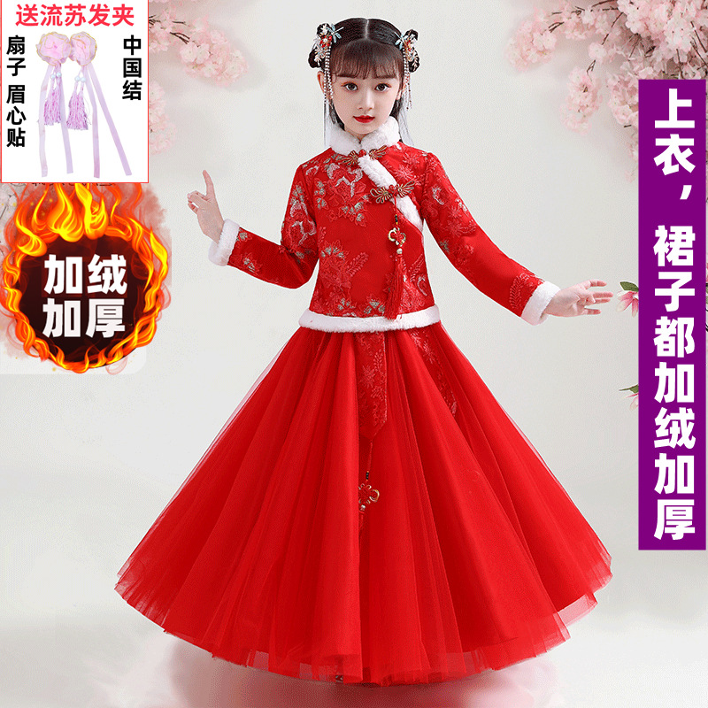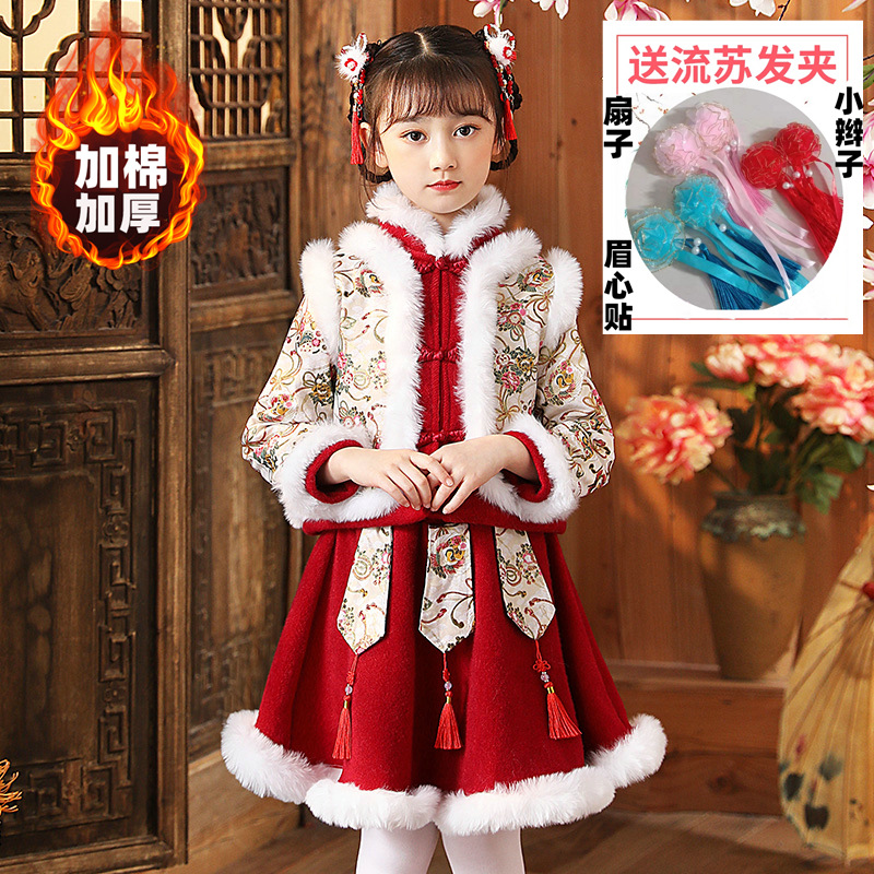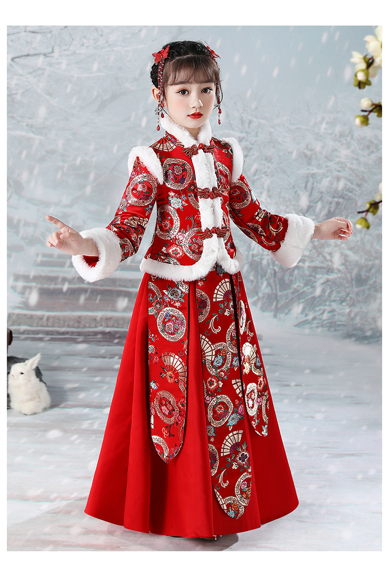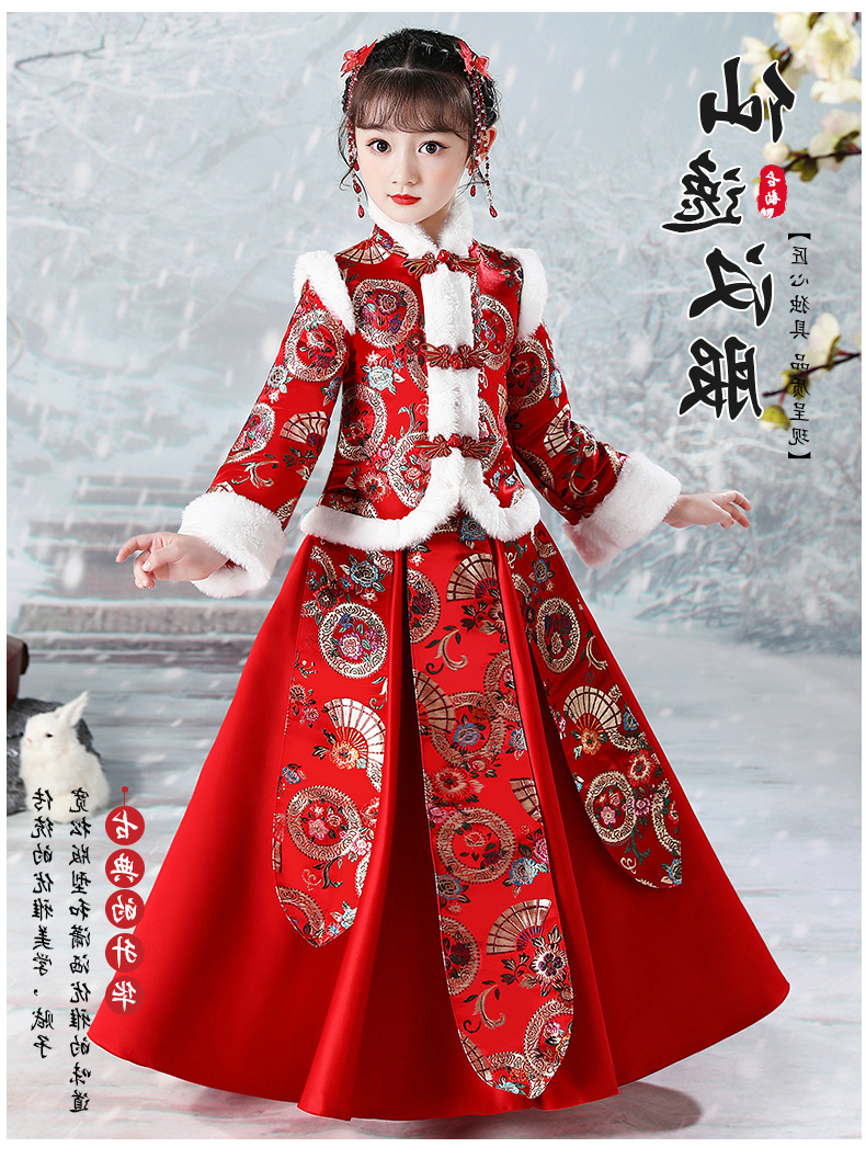 Детский костюм Ханьфу YX, китайский наряд в стиле Тан, красный новогодний наряд для малышей, зимняя одежда для детей, утепленный древний костюм для зимы.