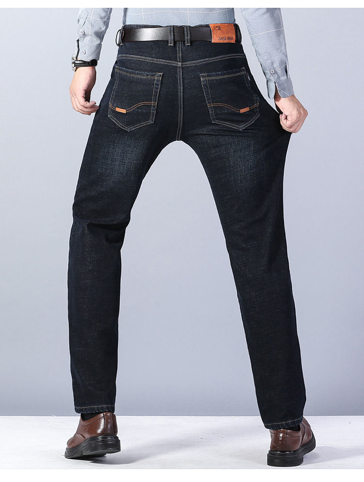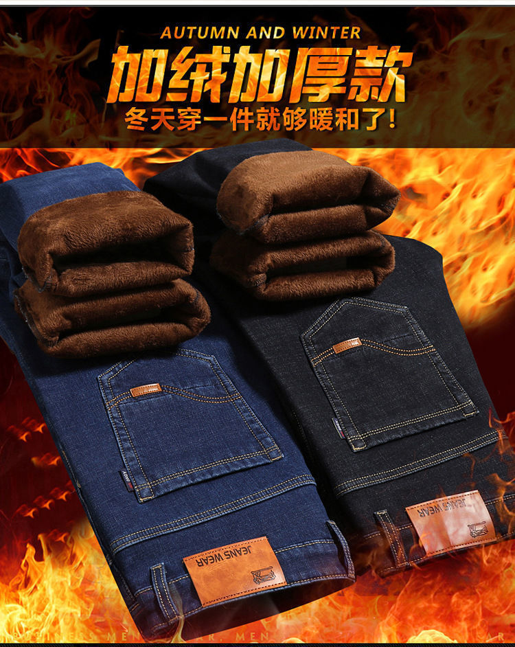 Осенне-зимние новые джинсы на флисовой подкладке, мужские свободные прямые утолщенные теплые мужские брюки, повседневные рабочие эластичные брюки