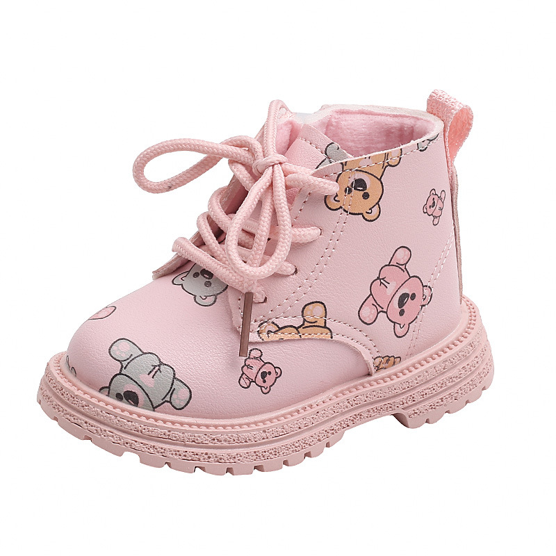 2022 осень и зима Новые теплые хлопковые тонкие бархатные кожаные сапоги на шнуровке для маленьких девочек, ботинки Martin для мальчиков, короткие сапоги с милым медведем