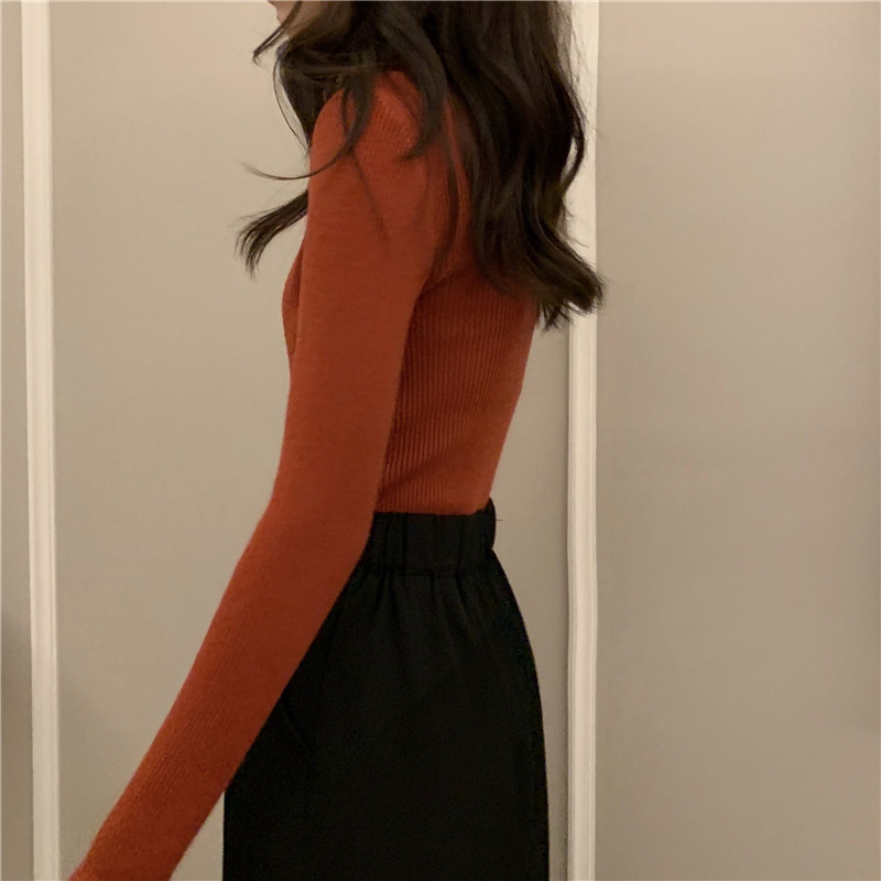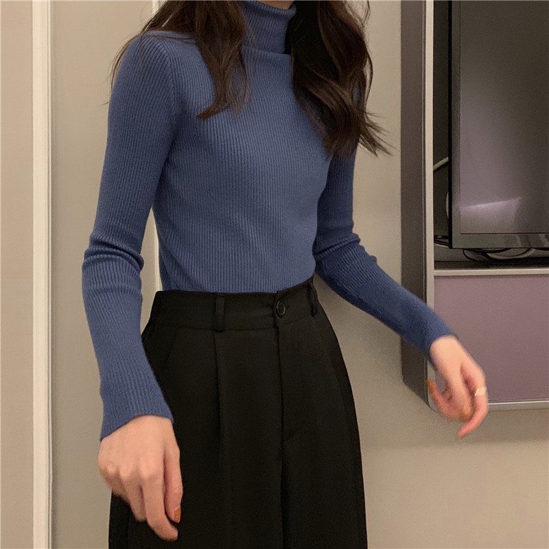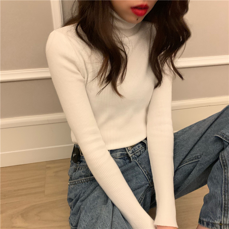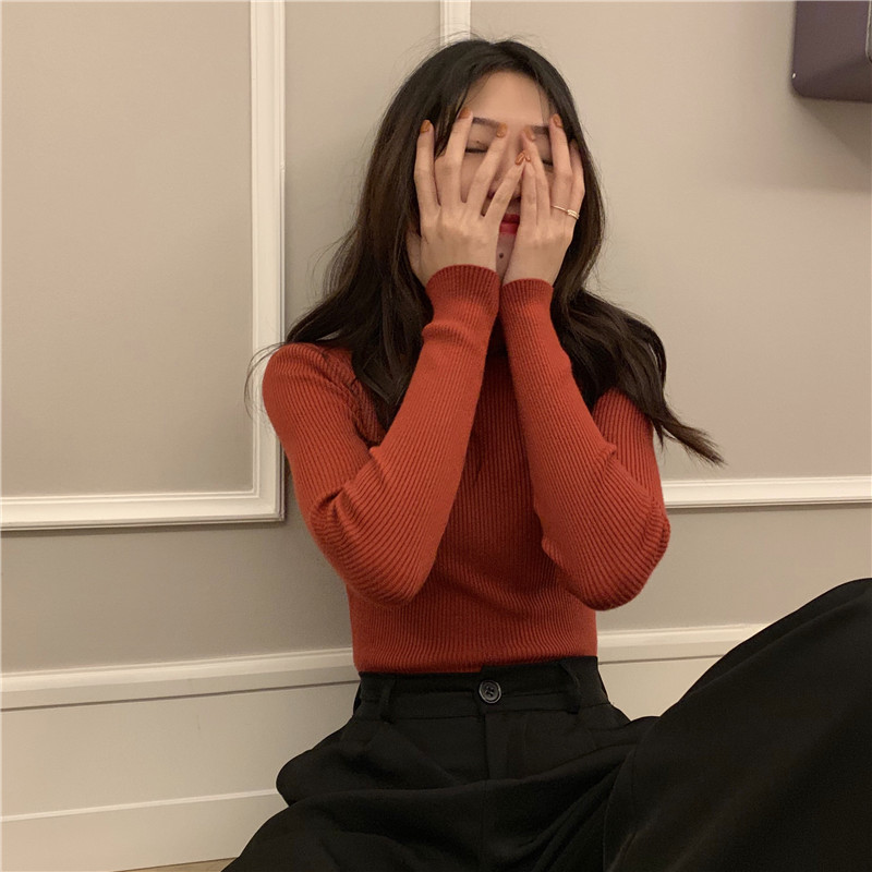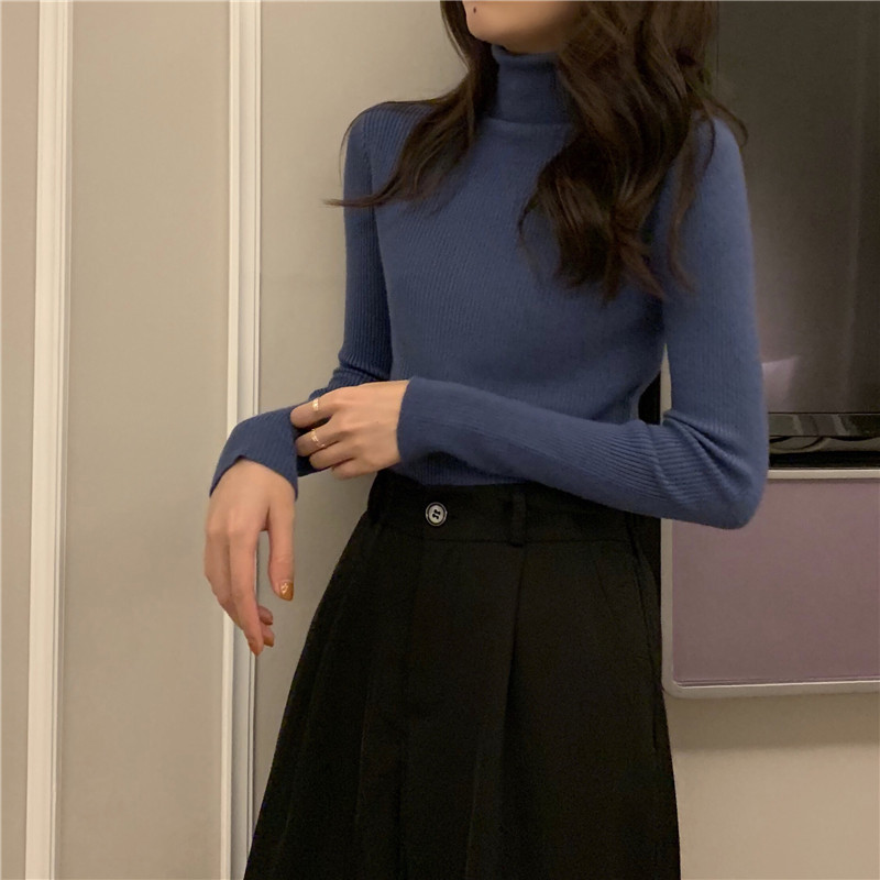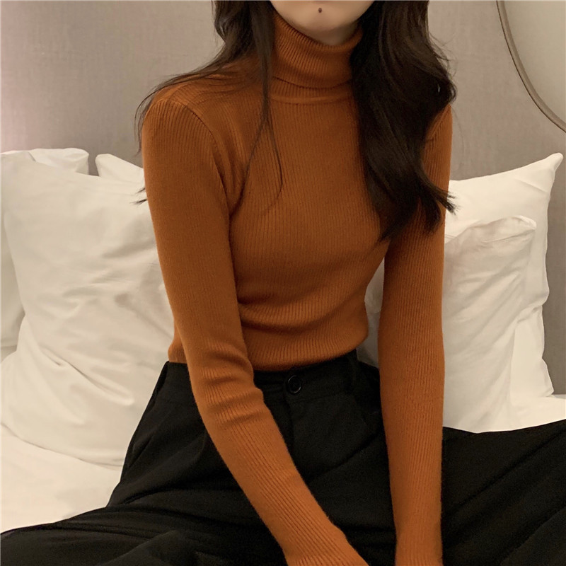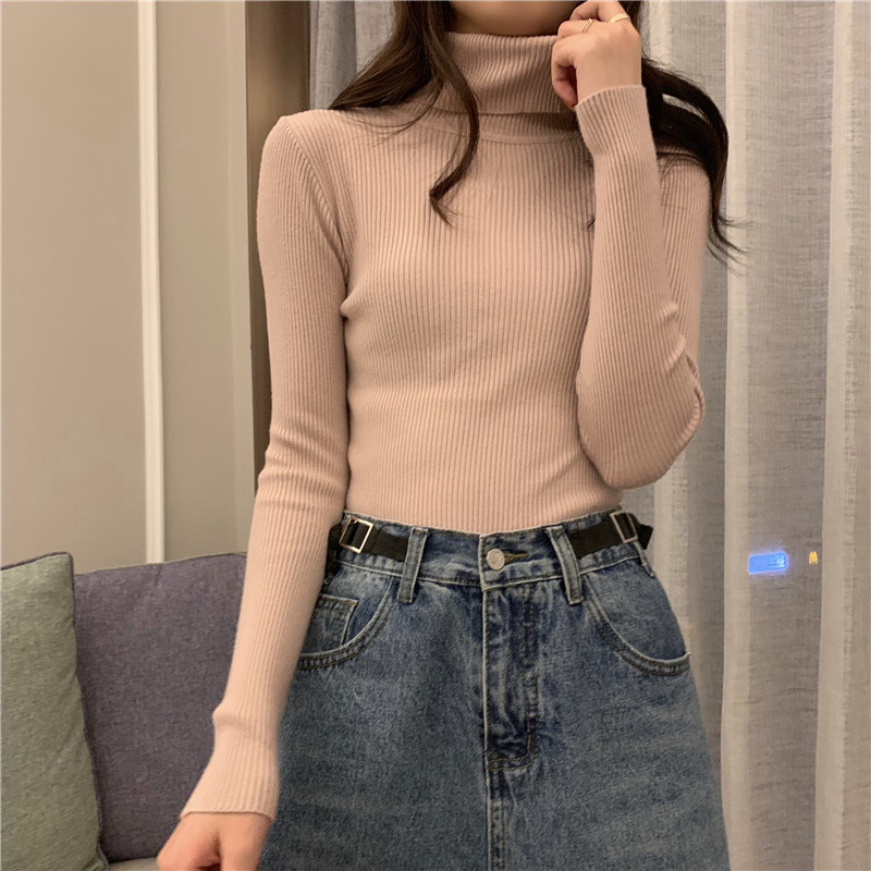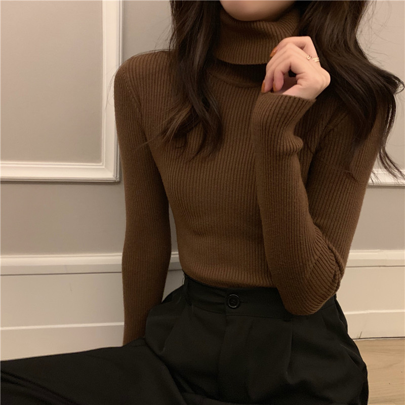 Свитер-водолазка, Женская Базовая внутренняя рубашка, Новинка осени и зимы, теплый приталенный Однотонный свитер с длинными рукавами, приталенный свитер